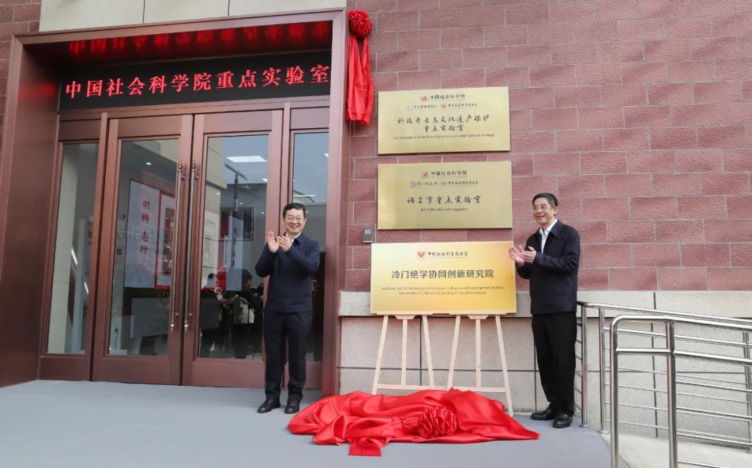 On November 15, the inauguration ceremony for the Key Laboratories of CASS (Key Laboratories of UCASS) took place in Beijing. Gao Xiang, President and Party Secretary of CASS, and Peng Jinhui, Vice President and Deputy Party Secretary of CASS, unveiled the Key Laboratory of Archaeometry and Cultural Heritage Conservation, the Key Laboratory of Linguistics, and the UCASS Institute for Collaborative Innovation in Rare and Endangered Studies. The event was attended by Zhen Zhanmin, Vice President and Party Group Member of CASS; Hang Yuanxiang, Head of the Discipline Inspection and Supervision Group and Party Group Member of CASS; and Zhao Zhimin, Secretary-General and Party Group Member, with Zhao Rui, Vice President and Party Group Member, presiding over the proceedings.