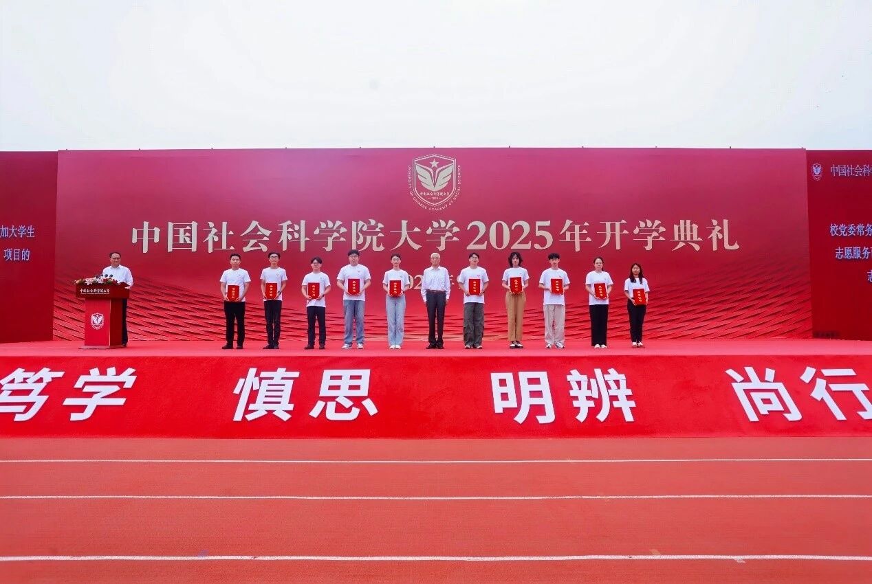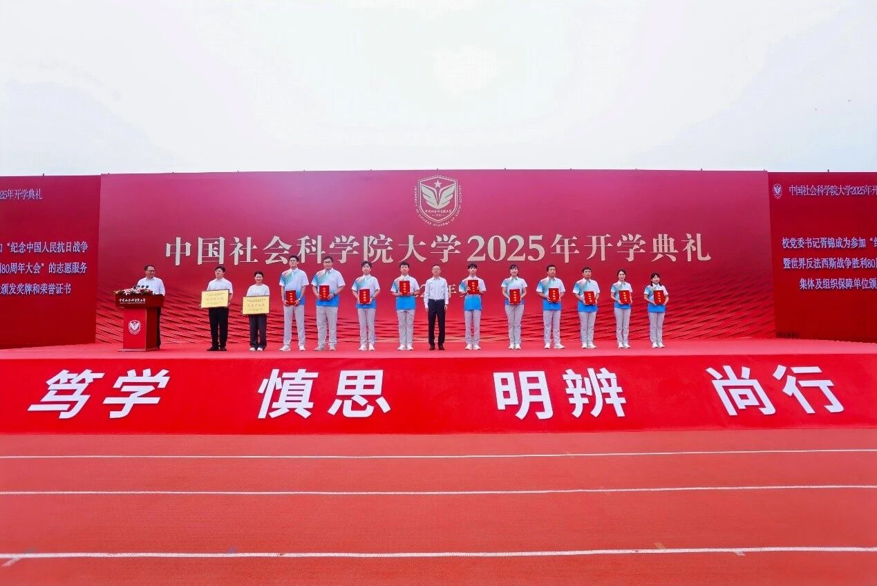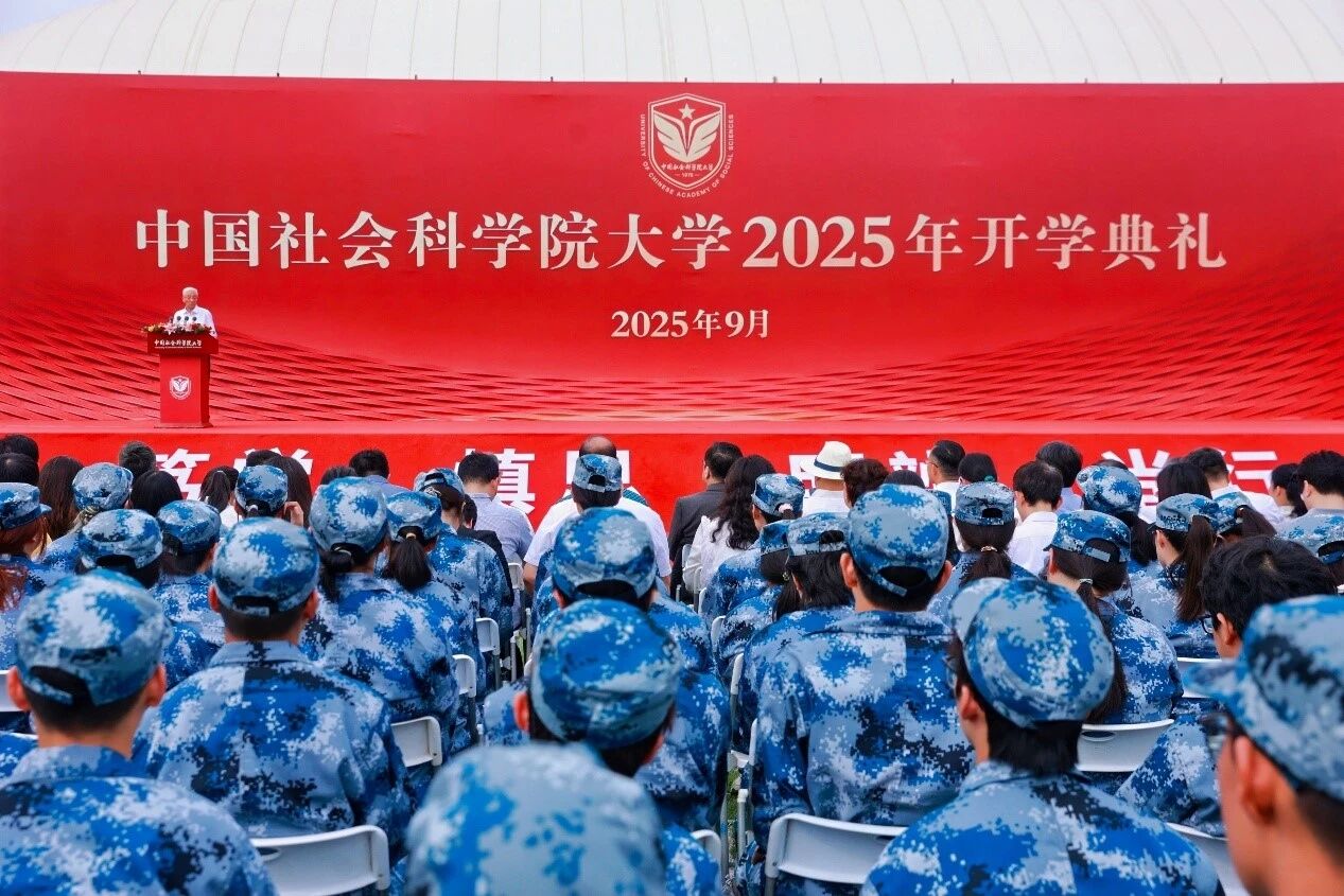 On the morning of September 12, the 2025 opening ceremony of the University of Chinese Academy of Social Sciences was held at the sports ground of its Liangxiang campus. The event was attended by prominent figures including Chao Gejin, Director of the Division of Humanities and Philosophy at the Chinese Academy of Social Sciences; Cheng Wei, General Director of the Institute of Foreign Literature and Dean of the School of Foreign Languages; Zhang Zhiqiang, General Director of the Institute of Philosophy and Dean of the School of Philosophy; Zhang Shuhua, General Director of the Institute of Political Science and Dean of the School of Government; He Dexu, Dean of the Business School; Ye Hailin, General Director of the Institute of West Asian and African Studies and the China-Africa Research Institute; Chen Zhigang, Deputy General Director of the Academy of Marxism Research; Zhu Xuyao, Deputy General Director of the Institute of Religious Studies; and Zhuang Guiyang, Deputy General Director of the Institute of Ecological Civilization, along with other university leaders.