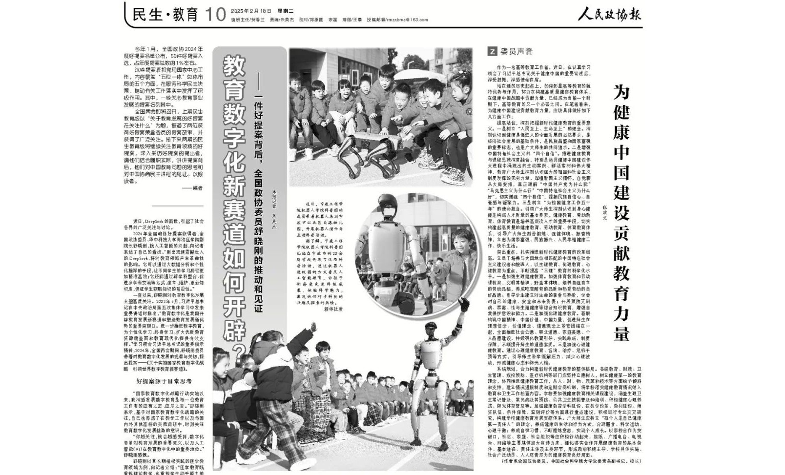 委员声音为健康中国建设贡献教育力量张政文作为一名高等教育工作者,近日,在认真学习领会了习近平总书记关于健康中国的重要论述后,深受鼓舞,深感使...2025-02-19