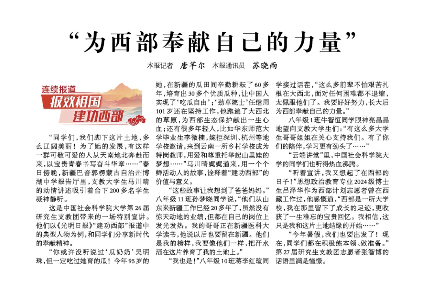 【连续报道·报效祖国 建功西部】“同学们,我们脚下这片土地,多么辽阔美丽!为了她的发展,有这样一群可敬可爱的人从天南地北奔赴而来,以宝贵青春...2025-03-24 -