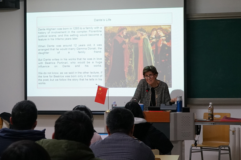 在大学学术周期间,那不勒斯东方大学语言学教授Rita Librandi分别以“中世纪意大利半岛上的众多语言”“我们为什么称但丁为意大利语之父?”为题为国际关系学院学生做了两场讲座,以意大利语的发展史为例深刻地阐述了语言发展与文化、政治、文学等因素的相互关系。艺术史教授Maria De Vivo为人文学院、国际关系学院学生们带来题为“那不勒斯地铁车站:一座日常生活博物馆”“作为目的地的那不勒斯:历经数世纪的城市角落、文字描绘和历史记忆”的两场专题讲座,以丰富多彩的图片展示和细致入微的分析讲解,带领学生们深入领略了意大利艺术发展史。考古学教授Matteo D’Acunto则为文法学院文博专业研究生带来有关于古希腊考古学的两场专题讲座----“坎帕尼亚的希腊城市:考古、历史与文化”“庞贝、海格立斯城和坎帕尼亚休闲别墅”,从考古学角度向学生们展示和分析了古希腊时期那不勒斯地区的人文历史。希腊语与历史学教授Riccardo Palmisciano为人文学院学生做了题为“古希腊罗马和中世纪诗歌与酒文化”“荷马之秘:欧洲最伟大诗人之死”的两场专题讲座,让学生们了解了以酒文化和文学为载体的欧洲文明发展的精彩片段。