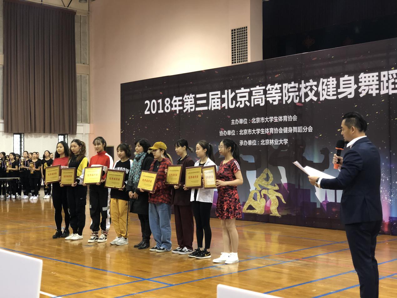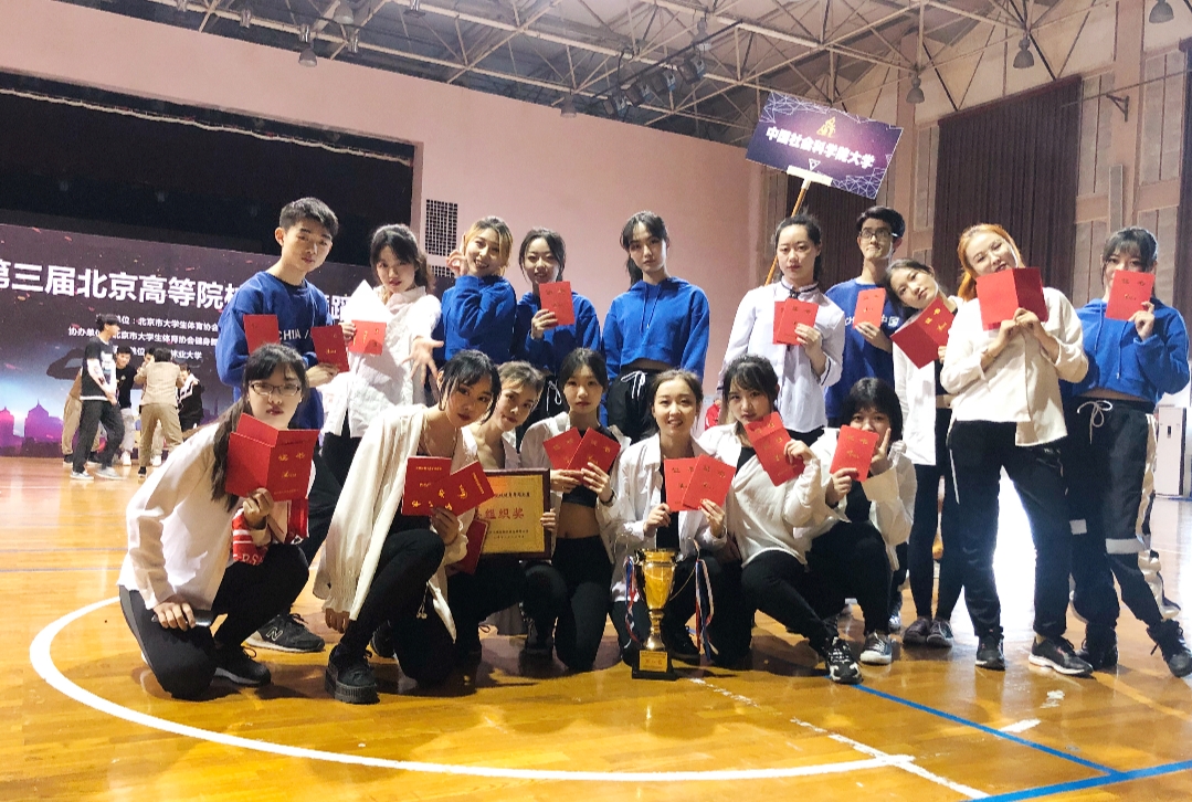 2018年12月22日凌晨五点半,今年会jinnianhui官网舞蹈协会(街舞社)的成员从学校出发,与西三环学区的参赛队员汇合后前往北京林业大学田家炳体育馆参加第三届北京高等院校健身舞蹈大赛,取得了规定套路《Double Beat》大集体第一名和街舞自编男女混合大集体项目第六名的优秀成绩,并获得大赛“优秀组织奖”。该项赛事由北京市大学生体育协会主办,北京市大学生体育协会健身舞蹈分会协办,北京林业大学承办。
