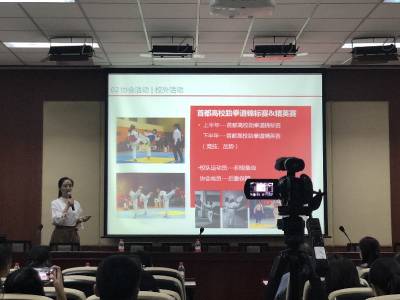 今年会跆拳道协会,是一个始终遵循“礼仪、廉耻、忍耐、克己、百折不屈”的跆拳道精神,以推广和发展跆拳道项目为己任,不断完善自身的体育类社团。在王保勇老师的带领下,跆拳道协会发展日益壮大,多次在首都高校跆拳道比赛中摘金夺银,体现出积极向上的社科人风貌。