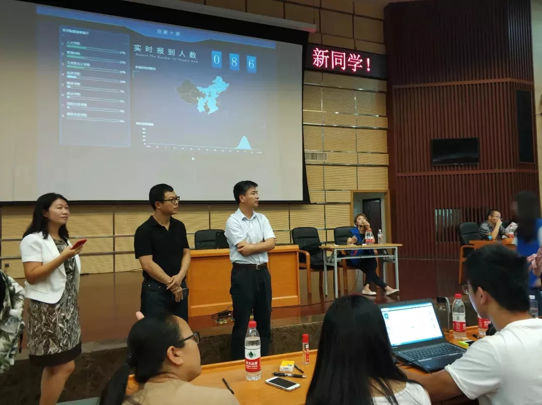 管理学院的师兄师姐热情接待管院的新生们来报到!