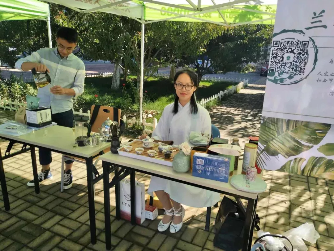 茶社招新——这个好看的小姐姐是18级新生王煜岚,虽然还没有加入茶社,但对茶艺有浓厚兴趣的她已经来茶社帮忙啦!
