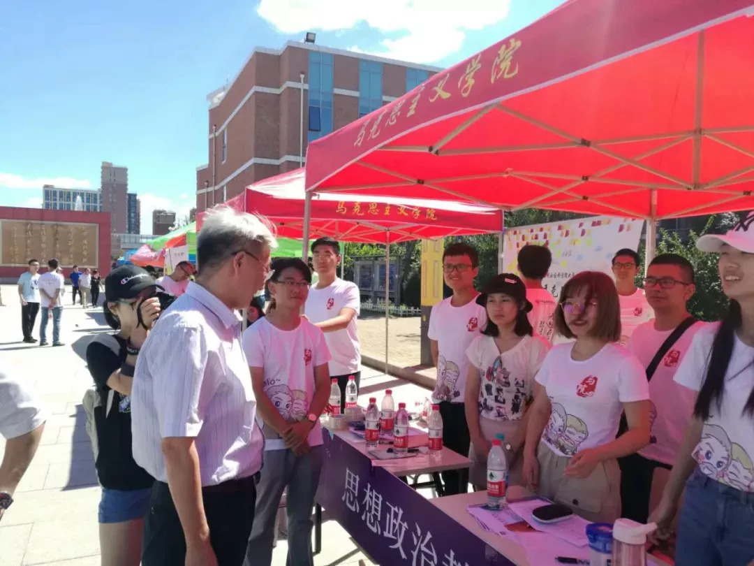 张政文书记来到马克思主义学院报到处慰问迎新工作人员并指导工作。