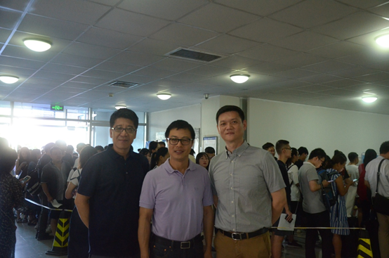 今年的新生报到会场设在教学楼一层,其中法律硕士报到分会场设在教学楼113教室。9月5日7:30,席老师与刘晨琦老师、郝倩倩老师、张硕老师、柳羽倩老师、李辉老师以及系研会同学早早地便来到报到现场,着手准备各项材料,确保报到顺利进行。清晨的校园人头攒动,热闹非凡。2018级同学们早早地便排起长队等候注册,大家脸上都洋溢着兴奋与喜悦。今年会jinnianhui官网(研究生院)党委副书记、纪委书记、副校长王兵老师和研工处王炜处长也早早地来到报到现场看望同学们,并与席老师亲切交谈,详细了解新生注册情况。