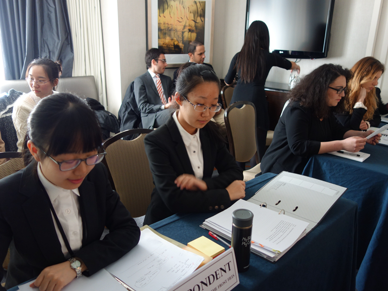 2016年JESSUP国际赛对阵来自意大利的参赛队伍(左二为霍凝馨)