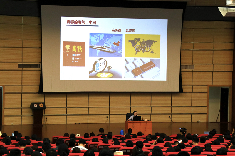 刘亚楠老师首先开始讲座,她紧紧围绕习近平5月2日同北大师生座谈会上的讲话对于青年提出的四个要求:“爱国”、“励志”、“求真”、“力行”,并着重对于“爱国”和“励志”两点进行讲解。值得注意的是,刘老师的讲授方式活泼生动,摆脱了枯燥的说教,谈论的都是与大学师生息息相关的话题,形式新颖,内容丰富,语言风趣,道理阐释深入浅出,很好地调动了师生的兴趣,令人印象深刻。