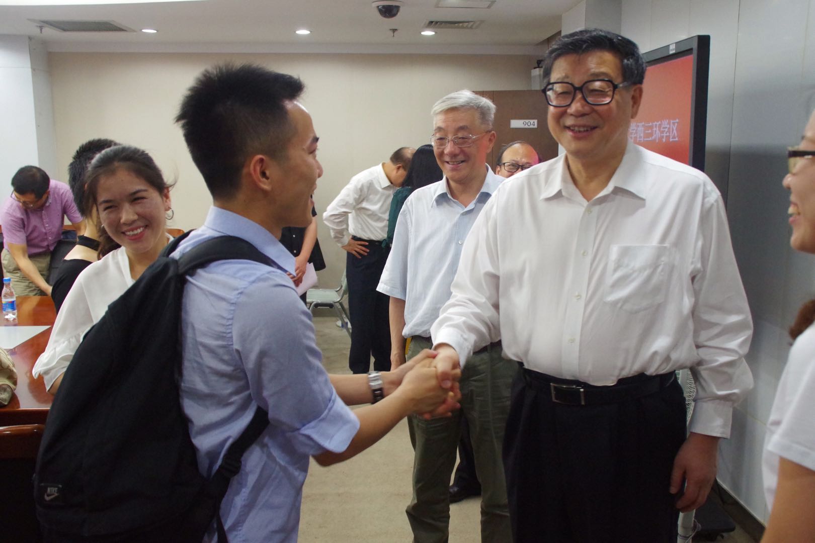 会后,王伟光校长同与会师生亲切握手,合影留念,并在校领导和有关部门负责人的陪同下参观考察校园,走访了校内征兵宣传点等处。