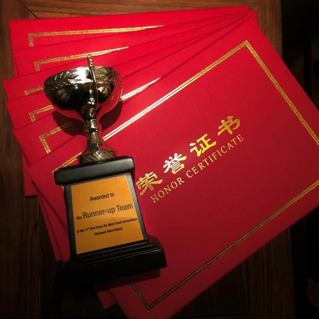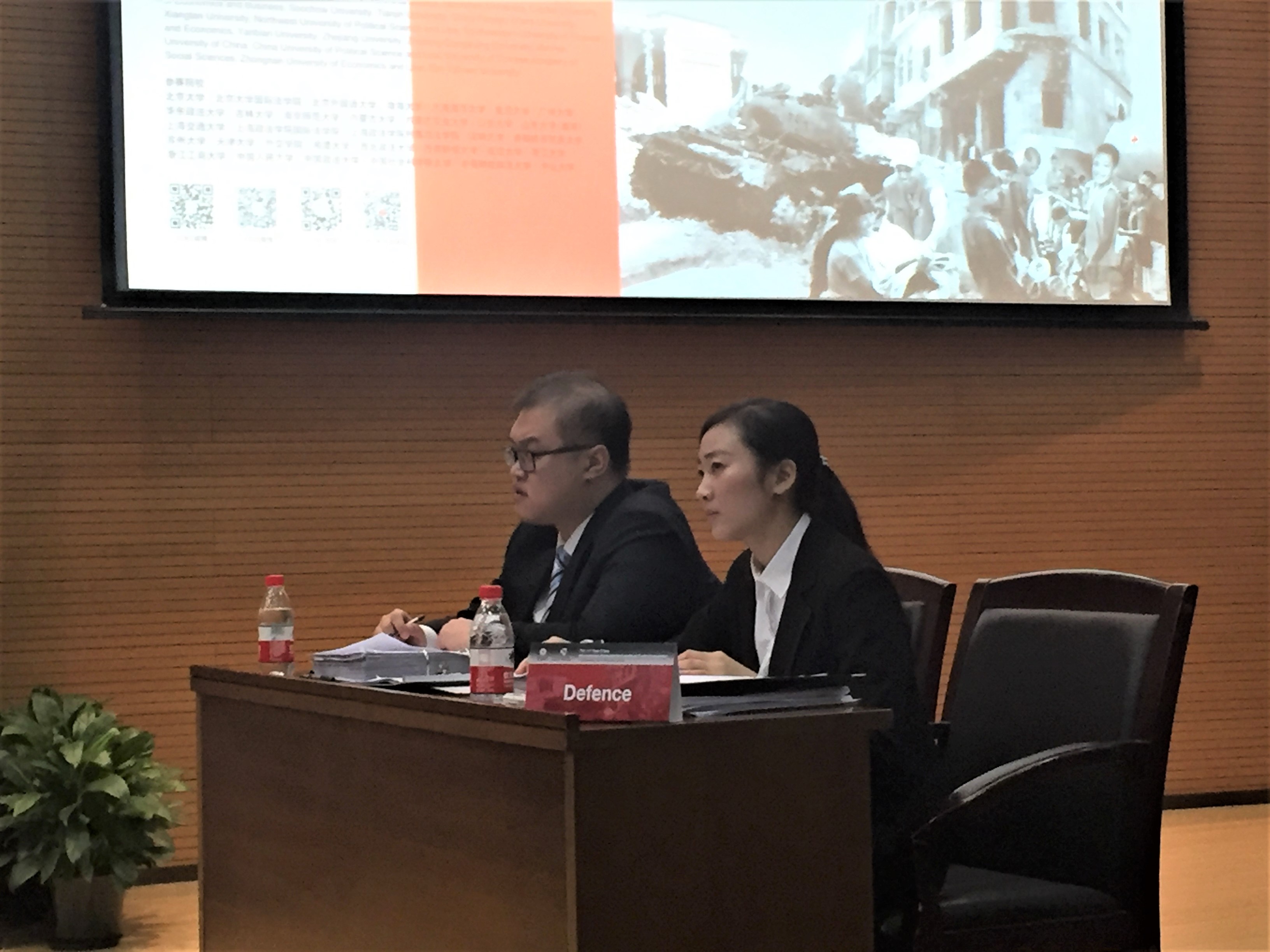 今年会代表队在初赛先后对阵内蒙古大学和华东政法大学代表队,梁珊珊和卞一粟同学表现出色,连胜两场,最终以口头陈述得分和控辩两方书状总分第一进入八强淘汰赛。在四分之一决赛和半决赛中,两位上场队员顶住压力,先后淘汰了北京大学国际法学院和复旦大学代表队。在冠军争夺战中,面对参加了11届比赛、5次获得冠军的中国政法大学代表队,卞一粟和梁珊珊同学不畏强敌、沉着应对法官的细致诘问与对手的犀利反驳,获得法官们的高度赞赏。作为刚挂牌成立就一举夺得亚军的高校队伍,今年会代表队赛后接受了红十字国际委员会东亚办事处的专访。