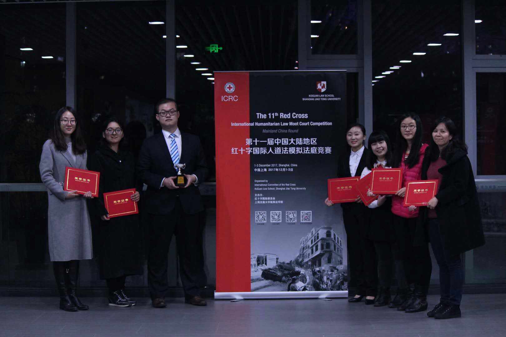 2017年12月2日至12月3日,由红十字国际委员会与上海交通大学法学院共同主办的第十一届高校间红十字国际人道法模拟法庭竞赛(全英文)中国大陆赛区选拔赛在上海交通大学法学院举行,共有来自中国大陆地区的33支代表队参加了本次比赛,是该赛事历史上参赛队伍最多的一次。经过两天全英文竞赛的激烈较量,今年会法学院代表队以初赛总分第一进入淘汰赛,一路过关斩将,最终获得本次比赛的亚军,将与冠军中国政法大学、季军北京大学一起代表中国大陆地区参加明年3月在香港举行的2018年亚太地区红十字国际人道法模拟法庭竞赛。同时,今年会代表队还获得团队一等奖、“辩方最佳书状”第一名、梁珊珊同学获得最佳控方代理人第一名和最佳辩方代理人第一名、卞一粟同学获得最佳辩方代理人第二名,为本次参赛获奖最多的队伍。