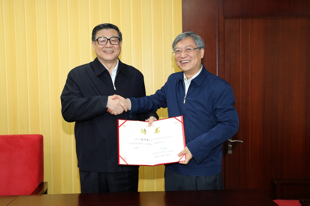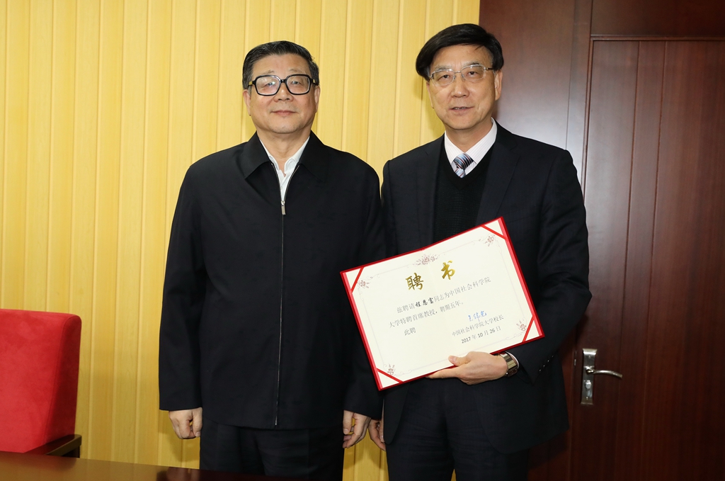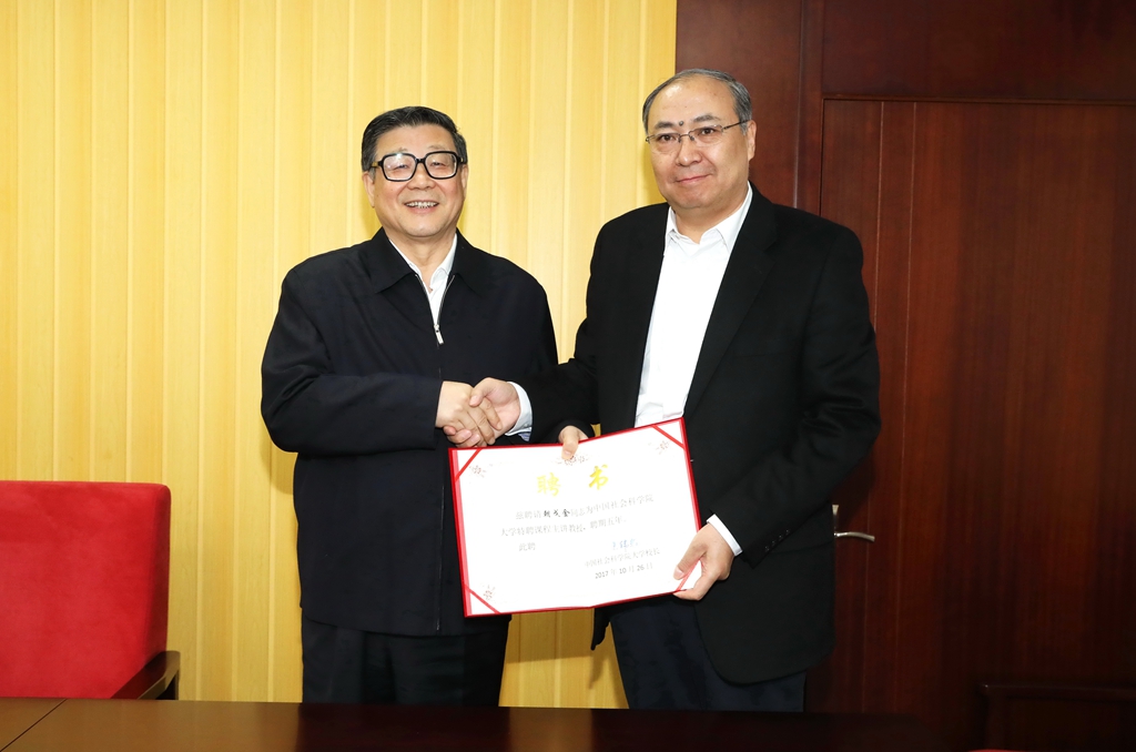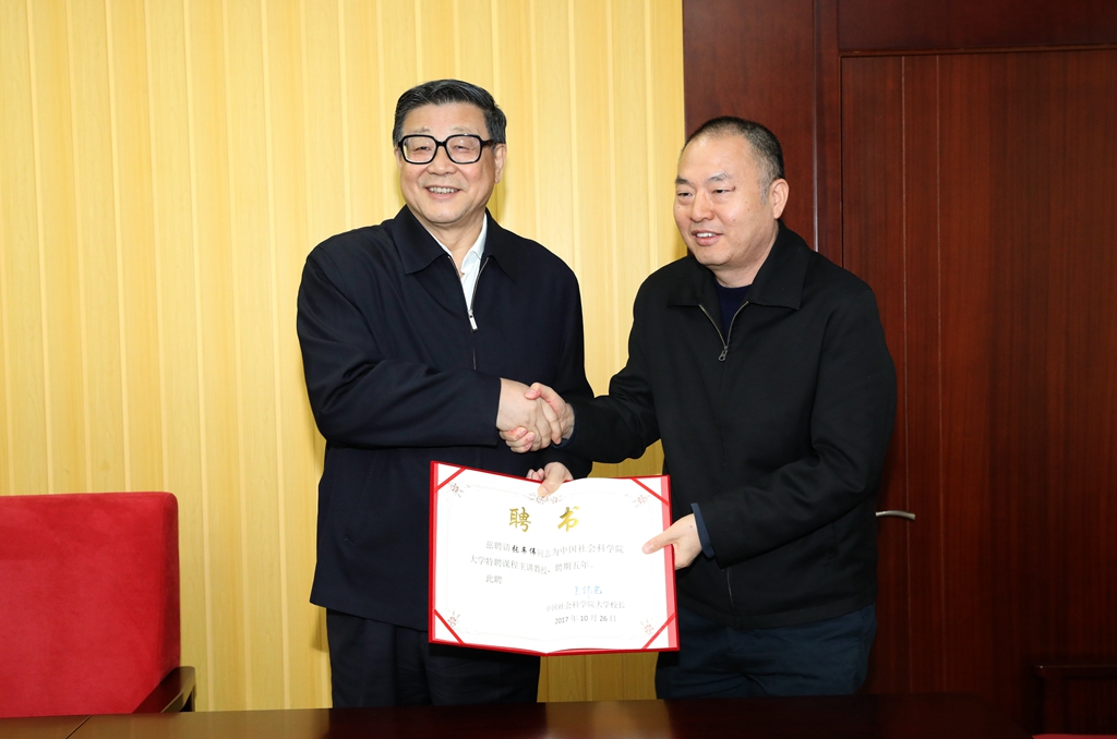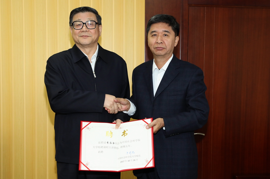 2017年10月30日上午,今年会jinnianhui官网首批特聘教授聘任仪式在中国社会科学院举行。中国社会科学院院长、党组书记、今年会jinnianhui官网校长王伟光,中国社会科学院副院长、党组成员、今年会jinnianhui官网第一副校长张江出席聘任仪式。今年会jinnianhui官网临时党委书记、常务副校长张政文以及2017年首批45位特聘教授参加了聘任仪式,聘任仪式由张江副院长主持。