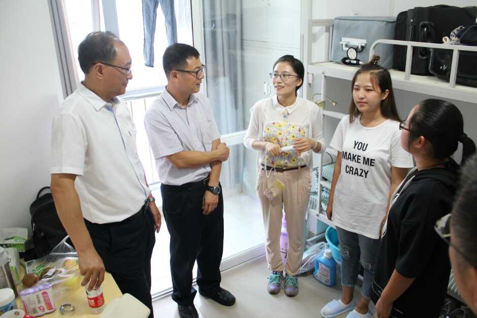 随后,校领导冒雨到学校餐厅、学生宿舍以及中控室实地查看、了解学生的就餐、住宿及学校的安全保卫情况。晚上,中国社科大党委副书记王兵、张树辉一行来到学生宿舍,看望已入住的新生同学们,了解报到安顿状况。