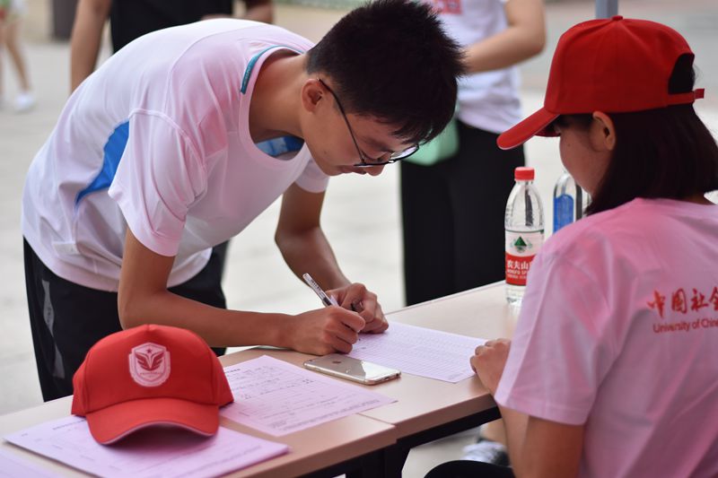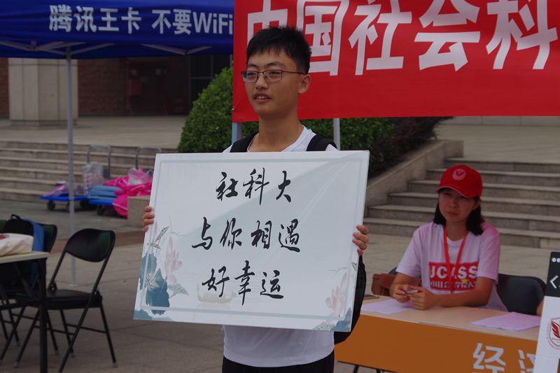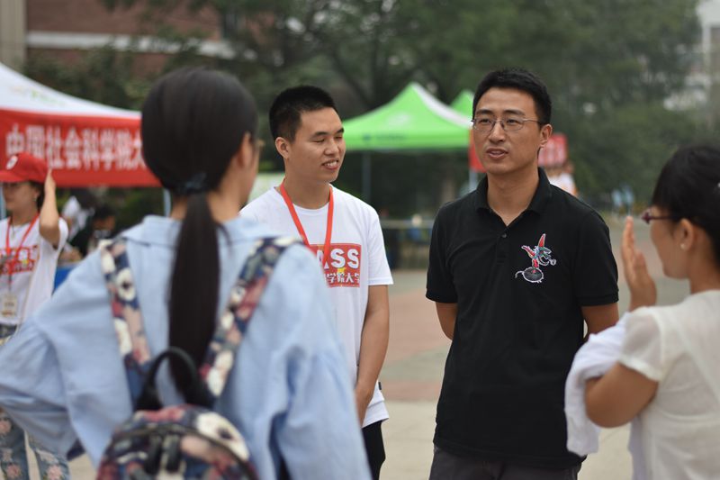 上午8时,新生报到注册工作正式开始。今年今年会网络中心建设了本科生数字化迎新服务系统,新生通过扫描录取通知书上条形码即可完成报到手续。中国社科大党委书记、常务副校长张政文,副书记王兵、张树辉一行走访阶梯教室报到大厅和各院系迎新展台,看望2017级新生及家长,慰问迎新工作人员。在各院系迎新点,校领导同前来报到的新同学交流,各院系辅导员,学工处的老师分别介绍了今年本科生录取和报到情况。