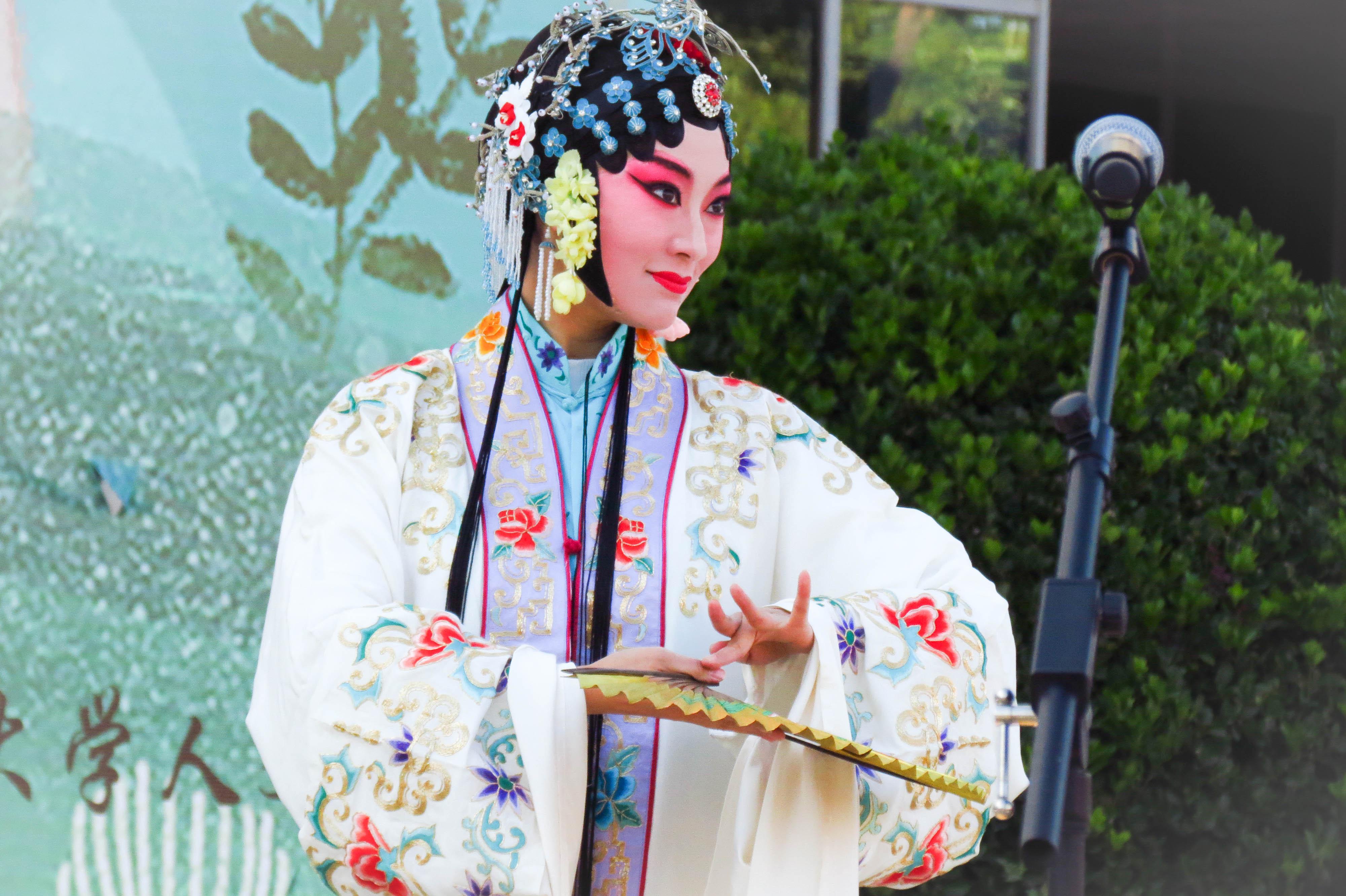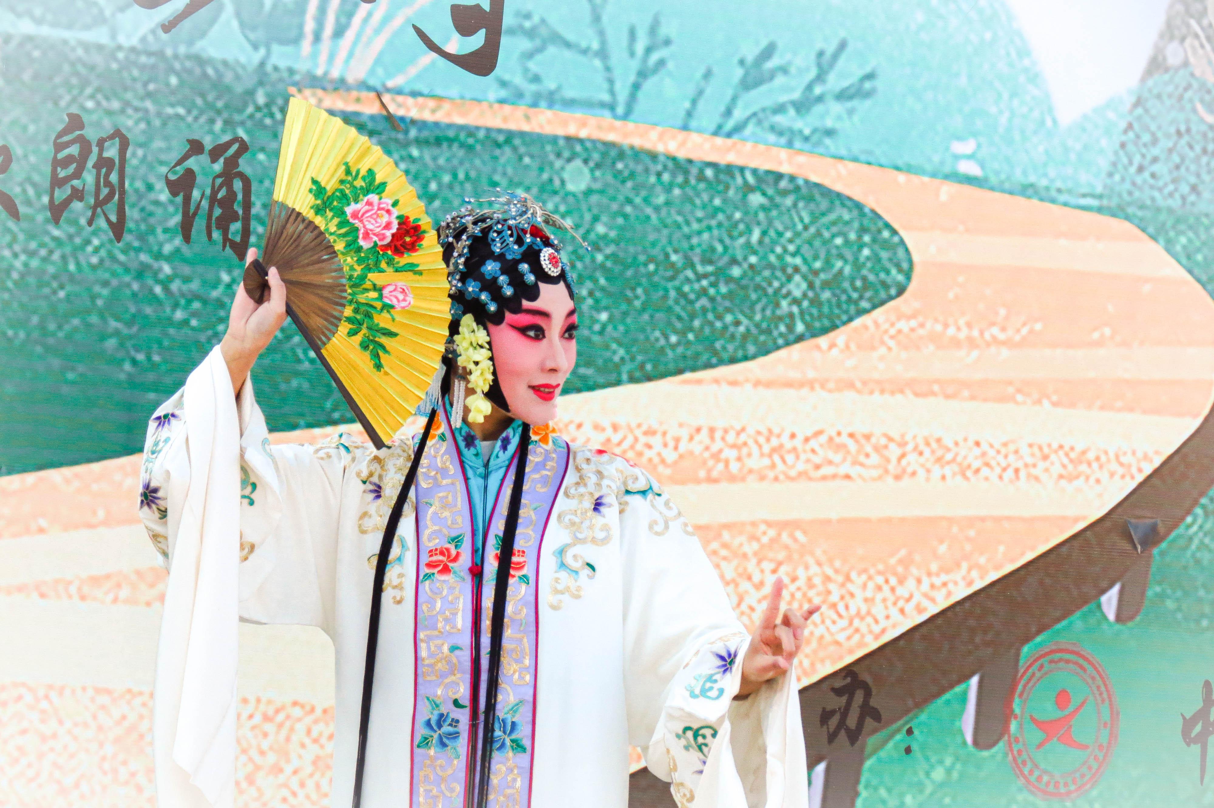 诗会行至中途,意犹未尽的观众们又欣赏到昆曲名家带来的视听盛宴。在诗意的深秋中,国家级昆曲演员王丽媛老师粉墨登场。她裙裾翻飞,眼波流转,一颦一笑动人心弦,字正腔圆地将一曲《游园》演绎得妙到毫颠。在场观众惊呼不断,都为老师高超的技艺所折服,为缠绵悱恻的情感叹惋不已。