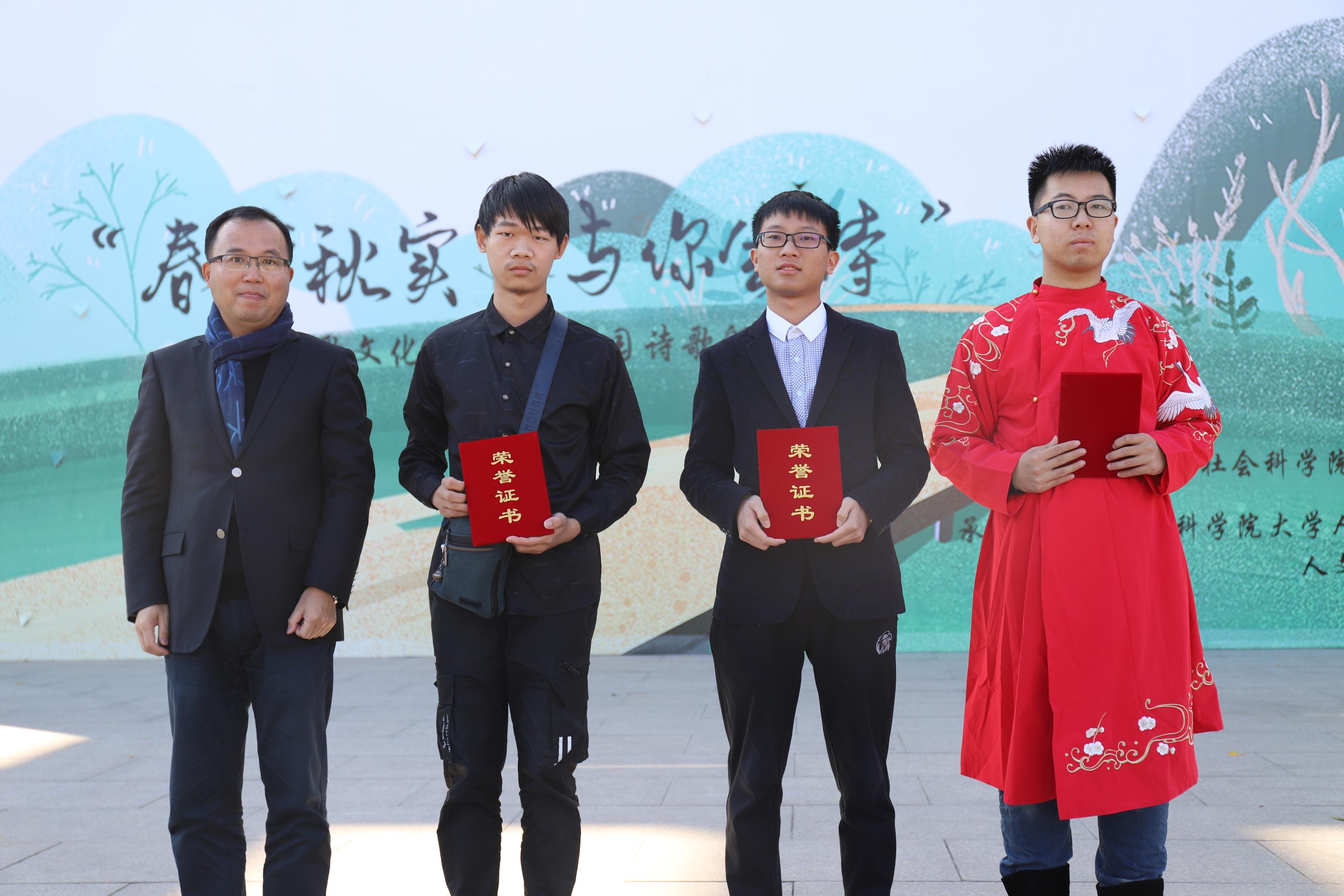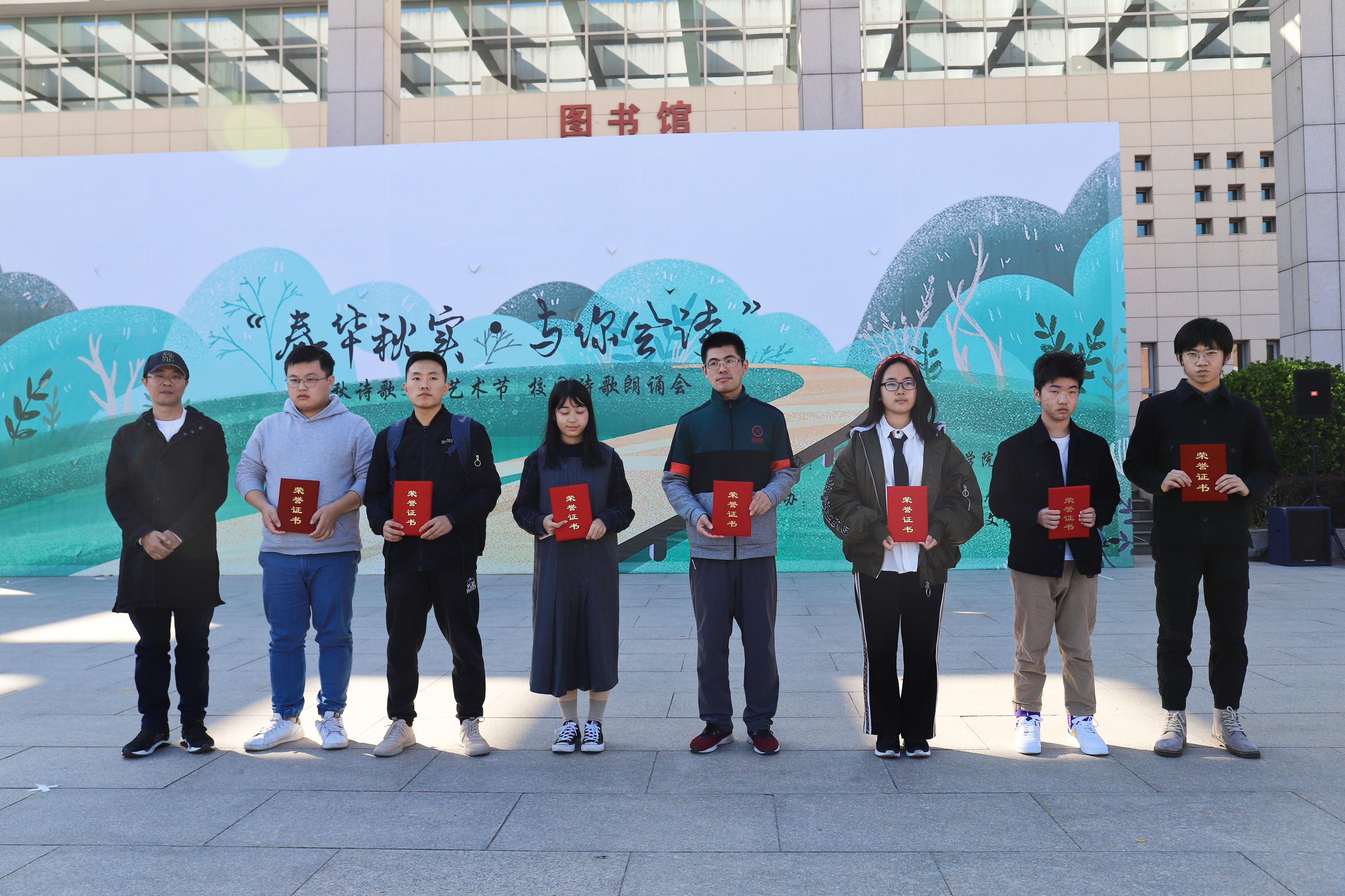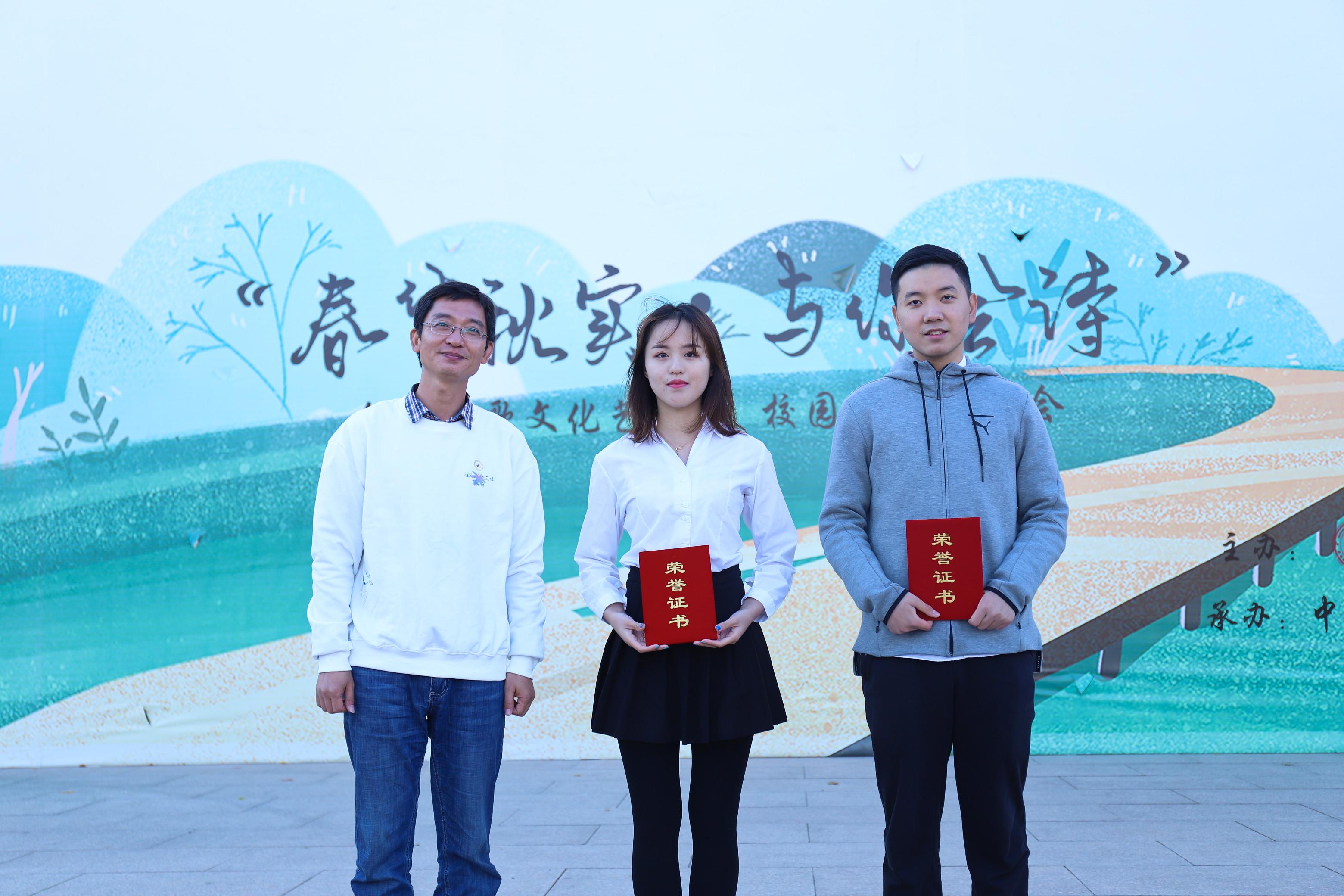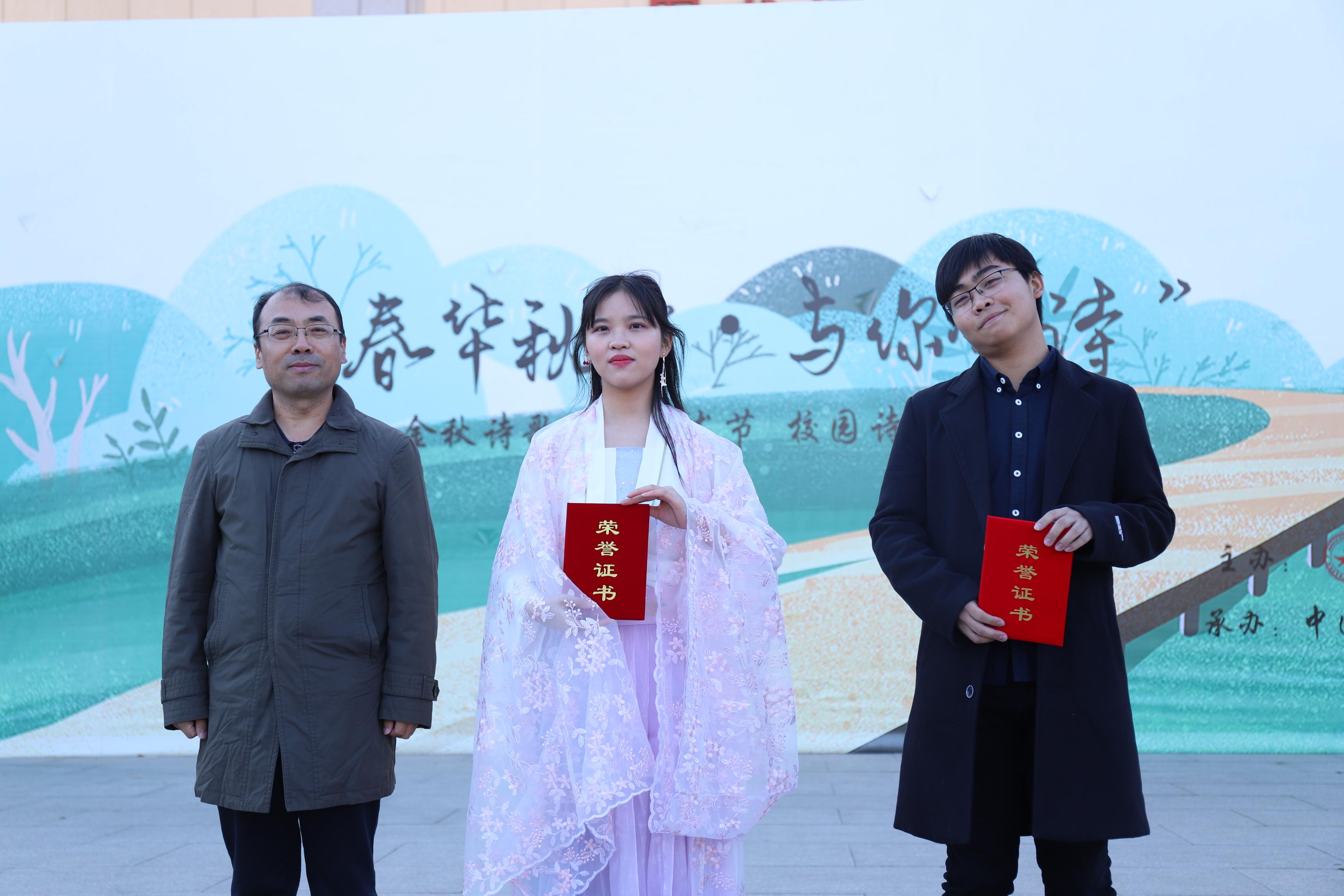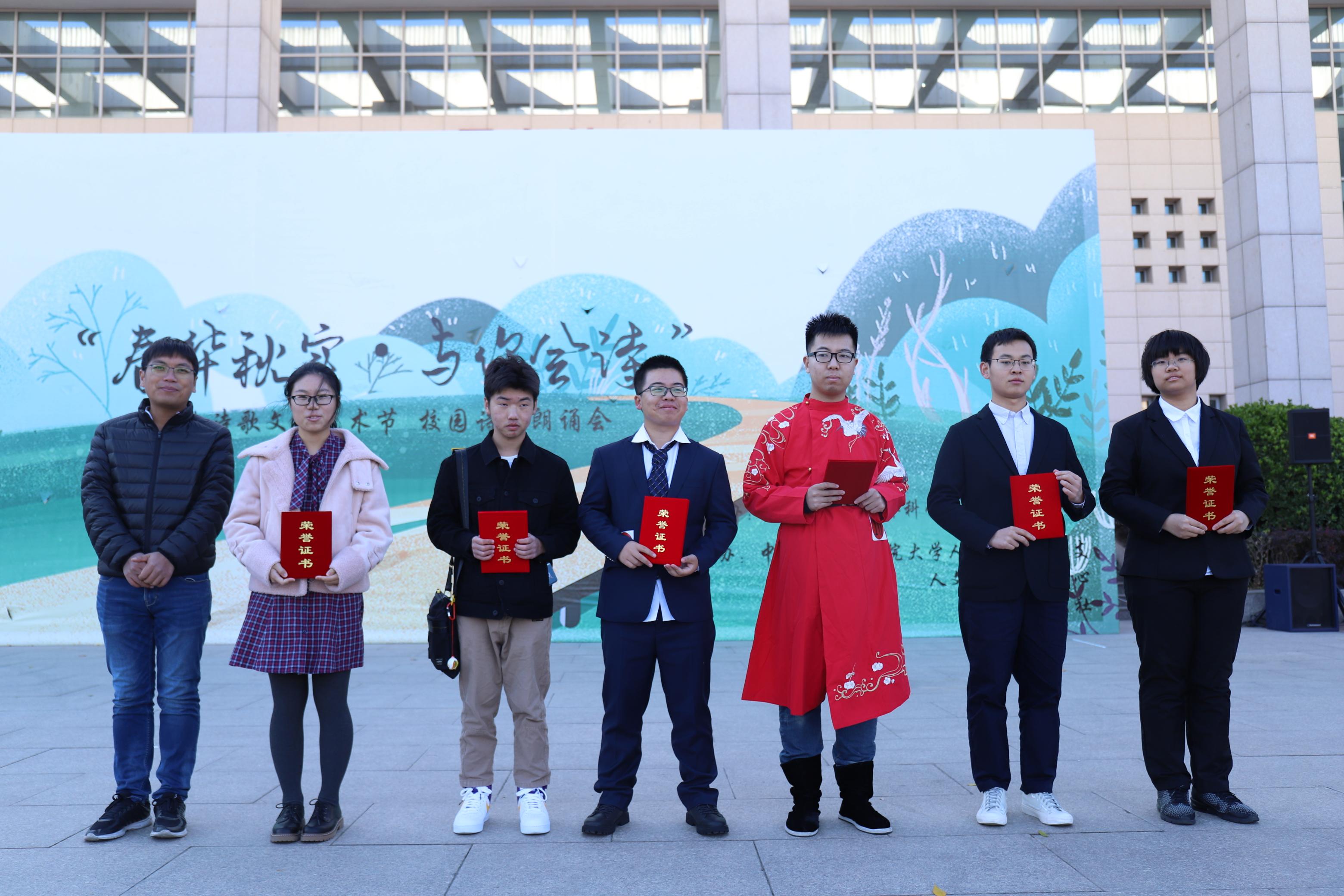 本次金秋诗会以诗歌朗诵比赛的颁奖结尾。人文学院邀请的嘉宾们根据诗歌朗诵参赛者们的表现,评选出了比赛的获奖者,并由人文学院老师们为获奖者颁奖。