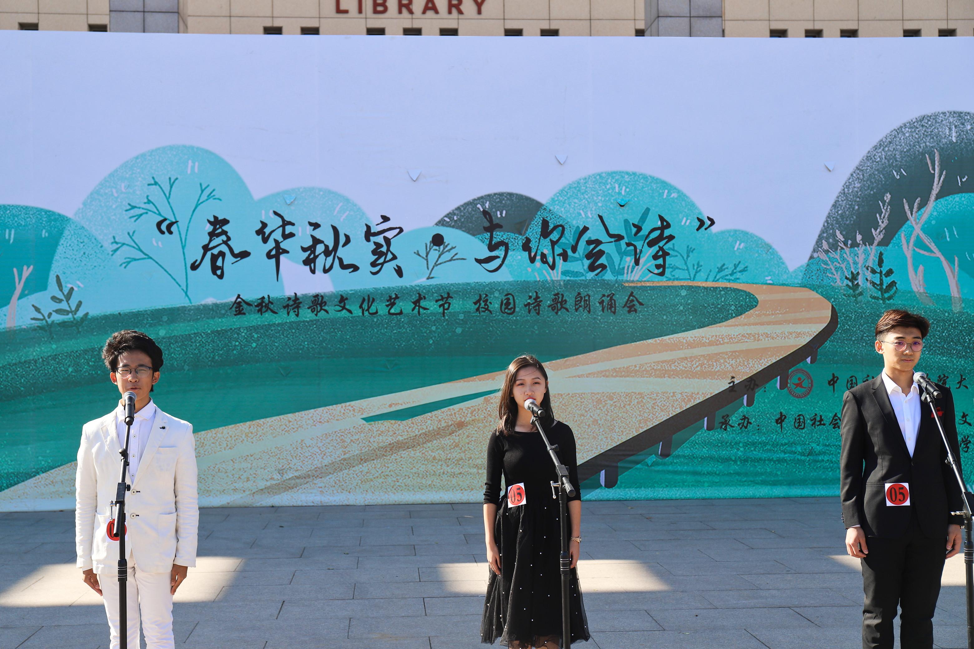 10月25日下午,由人文学院主办的“春华秋实·与你会诗”金秋诗歌文化艺术节·校园诗歌朗诵会(“金秋诗会”)落下帷幕。活动现场人流如织,热闹非凡。