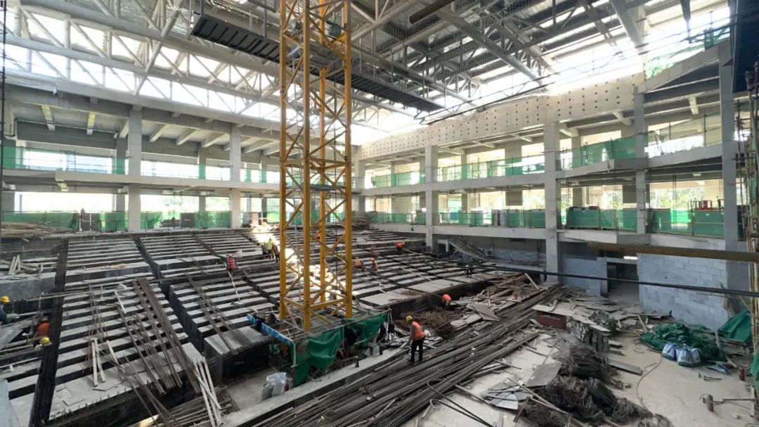那么我们何时才能得以使用这栋大楼呢?生产负责人告诉我们,“北区的二层已经开始为室内抹灰。下一步就是精装修,预计在年底将工程的内饰面和外饰面完成90%,在明年上半年竣工交付。”