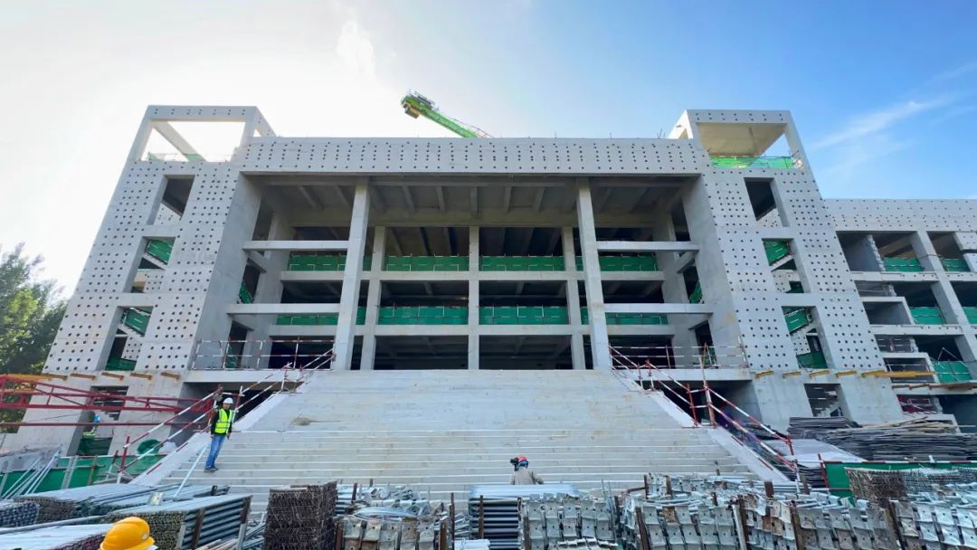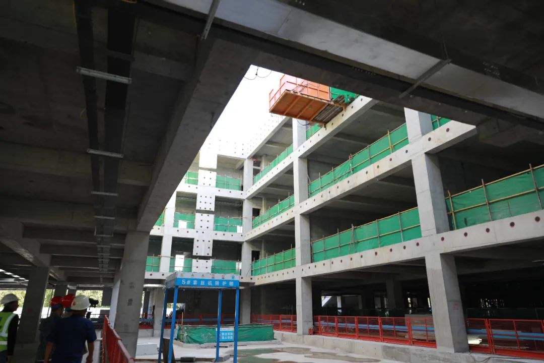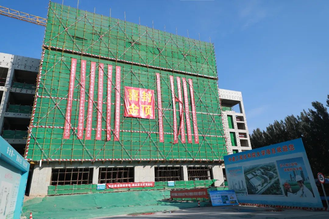 教学综合楼项目的进展更离不开施工单位和工人的努力。早在地下结构施工时,总承包单位就精心组织,协调各施工单位穿插施工。施工单位也克服地质复杂、水位高排水量大以及不利天气影响,采取夜间施工等措施,奋战120余天,提前45天,在6月1日完成了地下结构施工任务。在紧接而来的酷暑中,工人们更是日复一日地与烫手的钢筋做伴,在烈日的炙烤下一寸一寸搭起了大楼的骨架。最终在开学前,我们见到了教学综合楼喜封金顶。自2022年11月8日奠基动工以来,截至2023年10月20日,教学综合楼项目实现了346天的安全生产。
