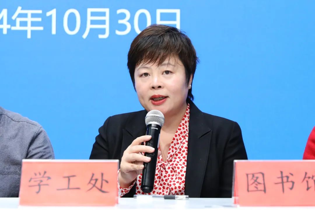 图书馆馆长周军兰通报了今年会“开启智慧之门 共赴知识盛宴”资源宣传月的活动开展情况。她介绍了图书馆9月份邀请社会科学文献出版社、北京大学出版社和中华书局开展的三场线下书展活动、线上图书采购活动和电子资源推广活动。她回应了近期学生反映的图书馆座位及寄存柜不足问题。新建教学综合楼一二层部分区域都将安排图书馆功能,届时将新增600余个座位,以满足同学们对图书馆的使用需求。现在正在加紧装备、家具进馆,将尽快为大家提供优质服务。图书馆近期将增购寄存柜并安装到位。