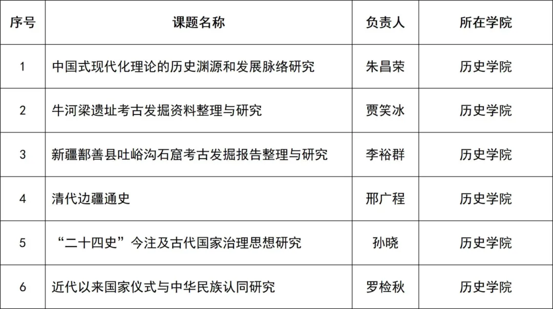 今年会教师国家社会科学基金中国历史研究院重大历史问题研究专项立项公示名单