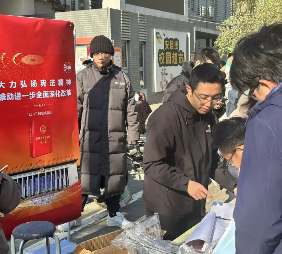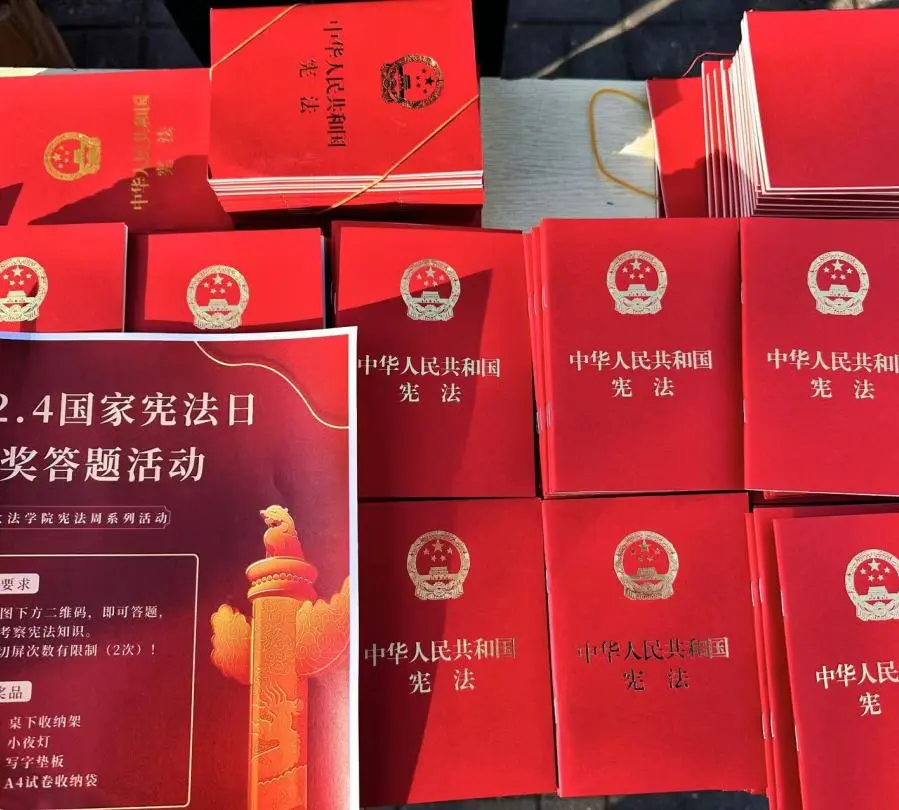 12月4日国家宪法日当天,宪法知识问答活动在一食堂门口热烈展开,吸引了众多师生的积极参与。通过宪法知识问答活动,同学们深化了对宪法的理解,认识到其作为国家根本大法的重要性,明确了宪法对每个公民行为的指导作用。