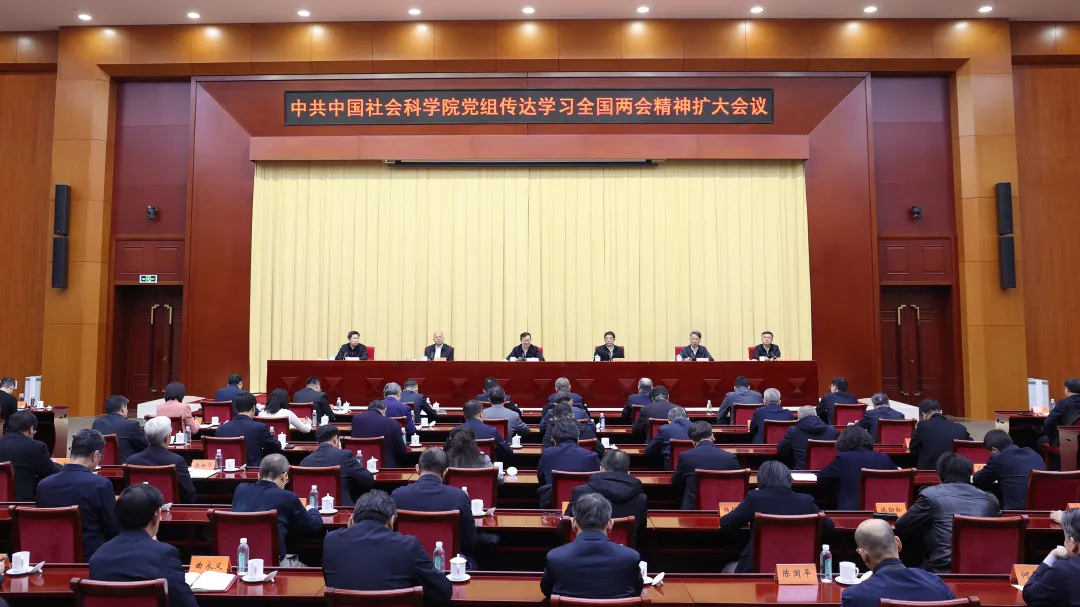 会议强调,中国社会科学院是以科研为中心工作的政治机关,必须更加深刻领悟“两个确立”的决定性意义,进一步增强“四个意识”、坚定“四个自信”、做到“两个维护”,在深入学习贯彻习近平总书记重要讲话和全国两会精神上走在前、作表率,当好贯彻落实党中央大政方针和决策部署的排头兵。要完整、准确、全面把握习近平总书记重要讲话的丰富内涵、精髓要义和实践要求,切实以习近平总书记重要讲话精神统一思想、统一意志、统一行动。要不断提升研究阐释习近平新时代中国特色社会主义思想的能力水平,以革命精神深化各项体制机制改革,培养高素质人才队伍,增强哲学社会科学研究成果转化能力,立足服务党和国家战略全局统筹谋划中国社会科学院事业蓝图。要持续巩固以我院“三项共识”固根本、“三项承诺”正作风、“三项举措”守底线的政治建设新格局,坚决扛起学习宣传全国两会精神的政治责任,迅速掀起学习宣传研究阐释热潮,推动年度各项重点工作落地落实落细,把贯彻落实习近平总书记重要讲话和全国两会精神转化为推动中国社会科学院高质量发展的强大动力。