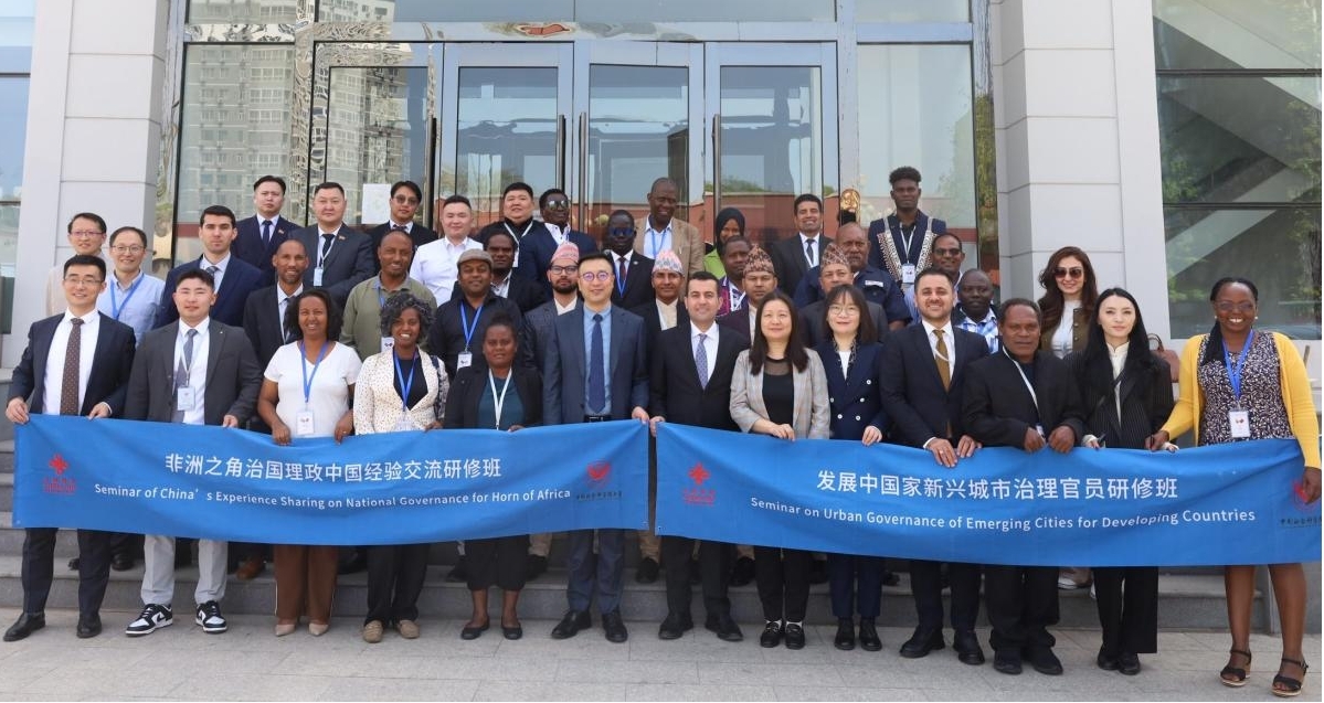 发展中国家新兴城市治理官员研修班与非洲之角治国理政中国经验交流研修班学员合影。主办方/供图