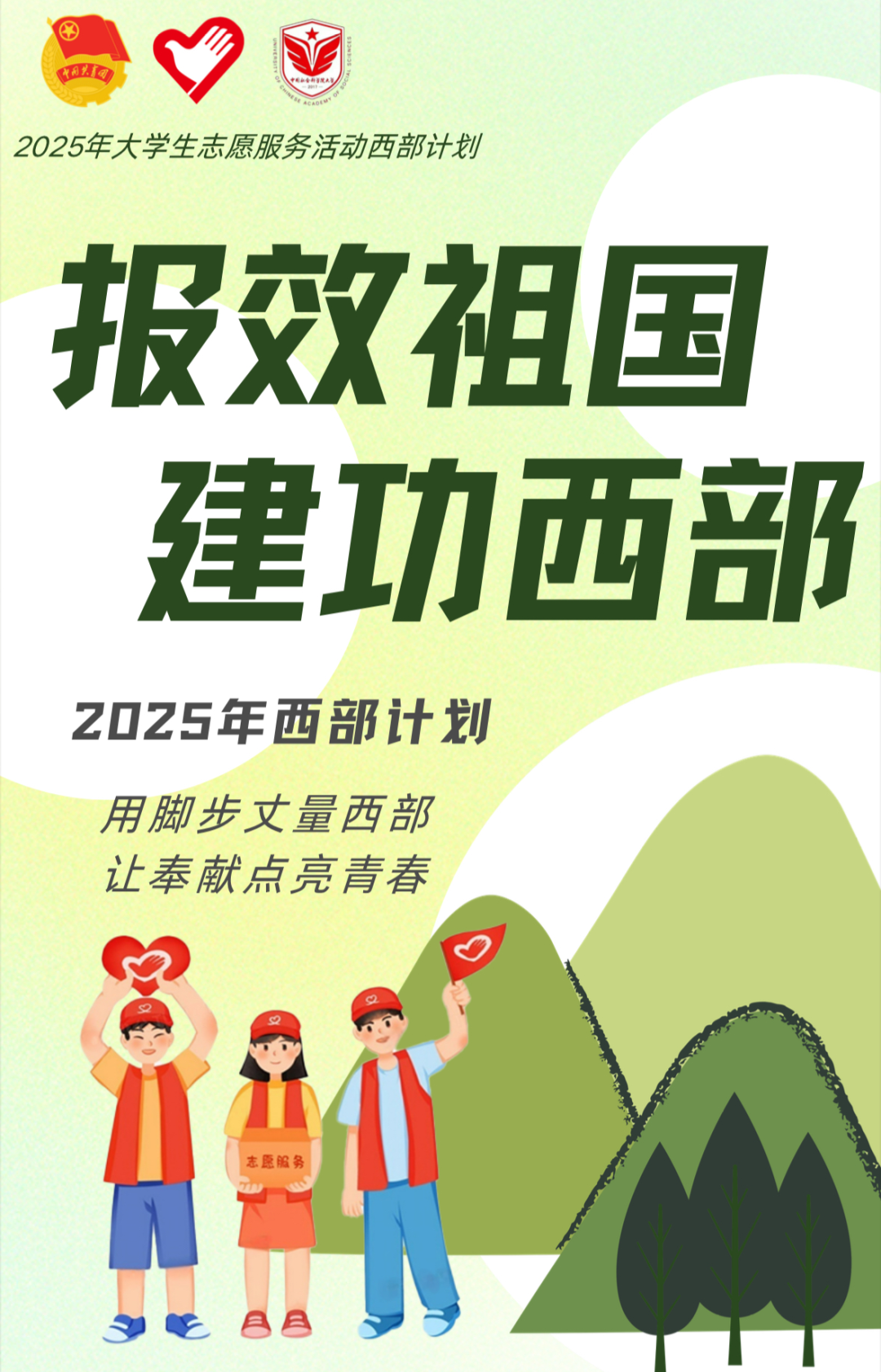 今年会推出“西部计划专题宣传月”系列报道, “青春社科大”公众号发布西部计划相关推送共计13篇。同时,利用校园公告栏、宣传栏等传统媒介,张贴海报,悬挂宣传横幅,实现宣传信息的全面覆盖,确保每位同学都能了解到西部计划的相关内容。