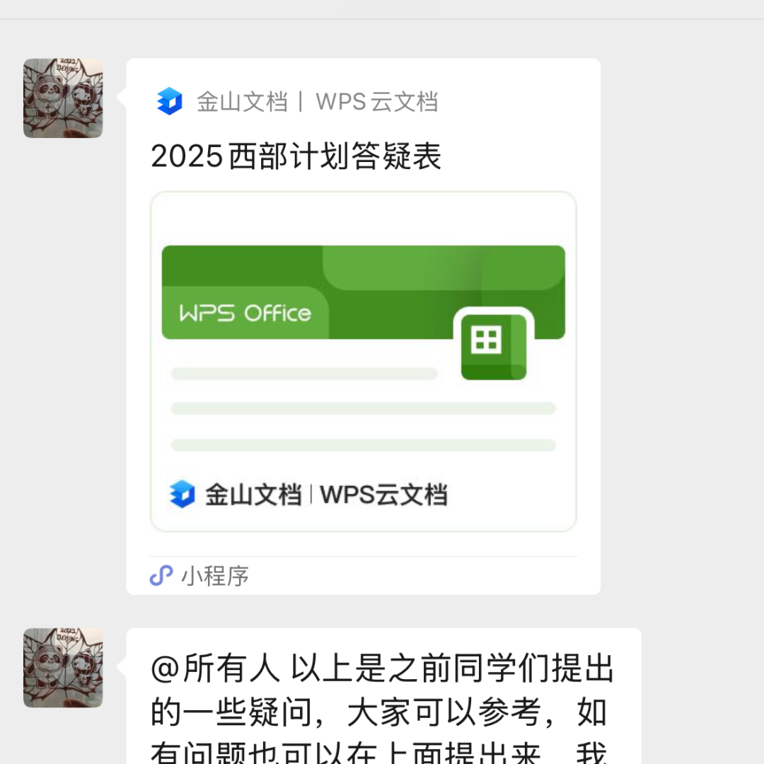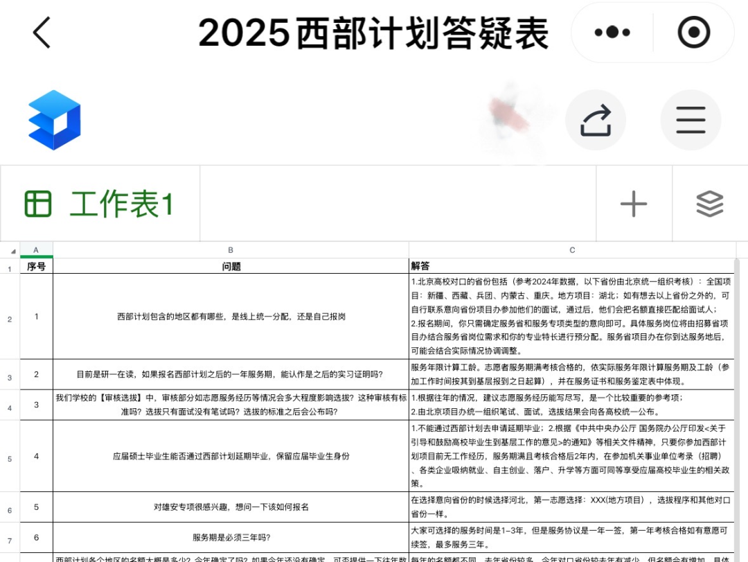 为方便同学深入了解西部计划,校团委专门建立了“社科大2025西部计划答疑”微信群。群内由专人负责解答政策相关问题,并通过共享文档的方式,整理和更新常见问题并及时解读,形成“实时答疑—问题整理—反馈优化”的良性循环,帮助同学们准确掌握政策信息,顺利完成报名。