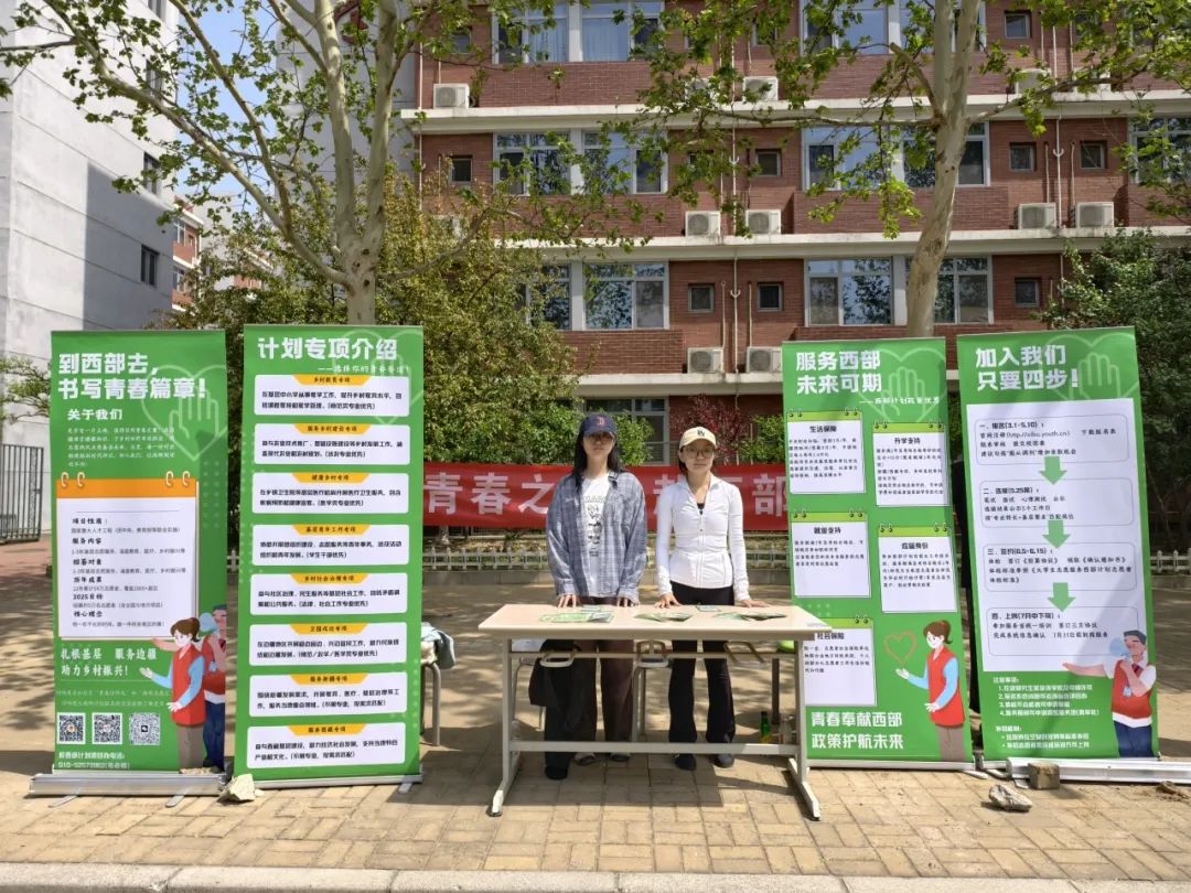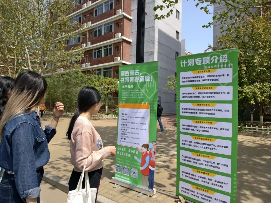 校园内设置了宣传咨询点,直接面向意向同学群体进行答疑解惑,增进同学们对于西部计划的认识,激发大家投身基层、建设国家的热情。