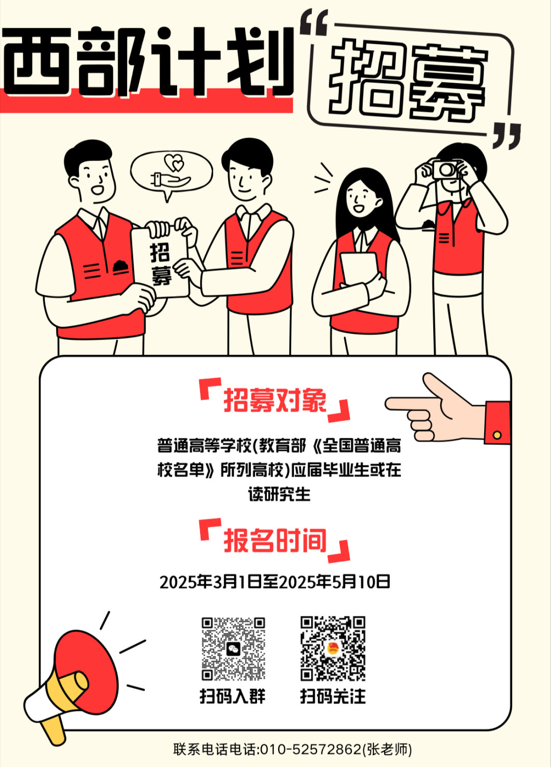 会议指出,西部计划不仅是国家推动区域协调发展、乡村振兴和基层治理的重要战略,也是大学生扎根基层、服务社会、实现人生价值的关键平台,更是当前稳就业、促发展、育人才的重要举措。会议强调,学校要立足国家发展大局,围绕学校人才培养目标,以高度的政治责任感继续深入推进2025年招募工作。会议要求,要提高站位,深化认识,各单位要将招募工作与人才培养紧密结合,做到思想认识到位、责任落实到位、工作推进到位;要系统谋划,精准施策,建立"政策传达-重点动员-节点把控"全流程工作机制;各单位要协同联动,提质增效,要主动担当、紧密配合,确保招募工作高质量完成。