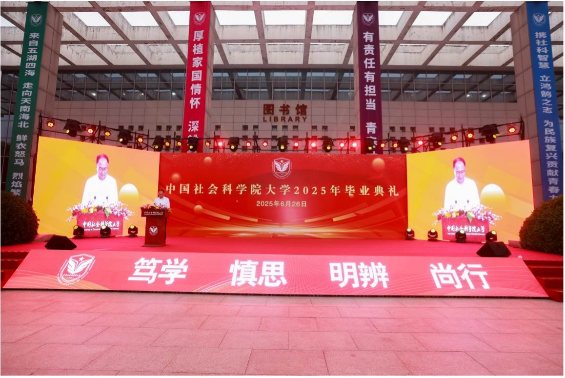 崔唯航引用习近平总书记二〇二五年新年贺词“梦虽遥,追则能达;愿虽艰,持则可圆”勉励学子。他相信,社科大毕业生们选择的每一步都是对“追则能达”信念的生动实践,坚守的每一程都是对“持则可圆”铭训的时代回应。毕业生们要用“笃学、慎思、明辨、尚行”的精神书写家国情怀,用哲学社会科学的专业视角诠释青春内涵。希望同学们永葆学术定力、胸怀家国担当,并祝愿大家毕业快乐、前程似锦。