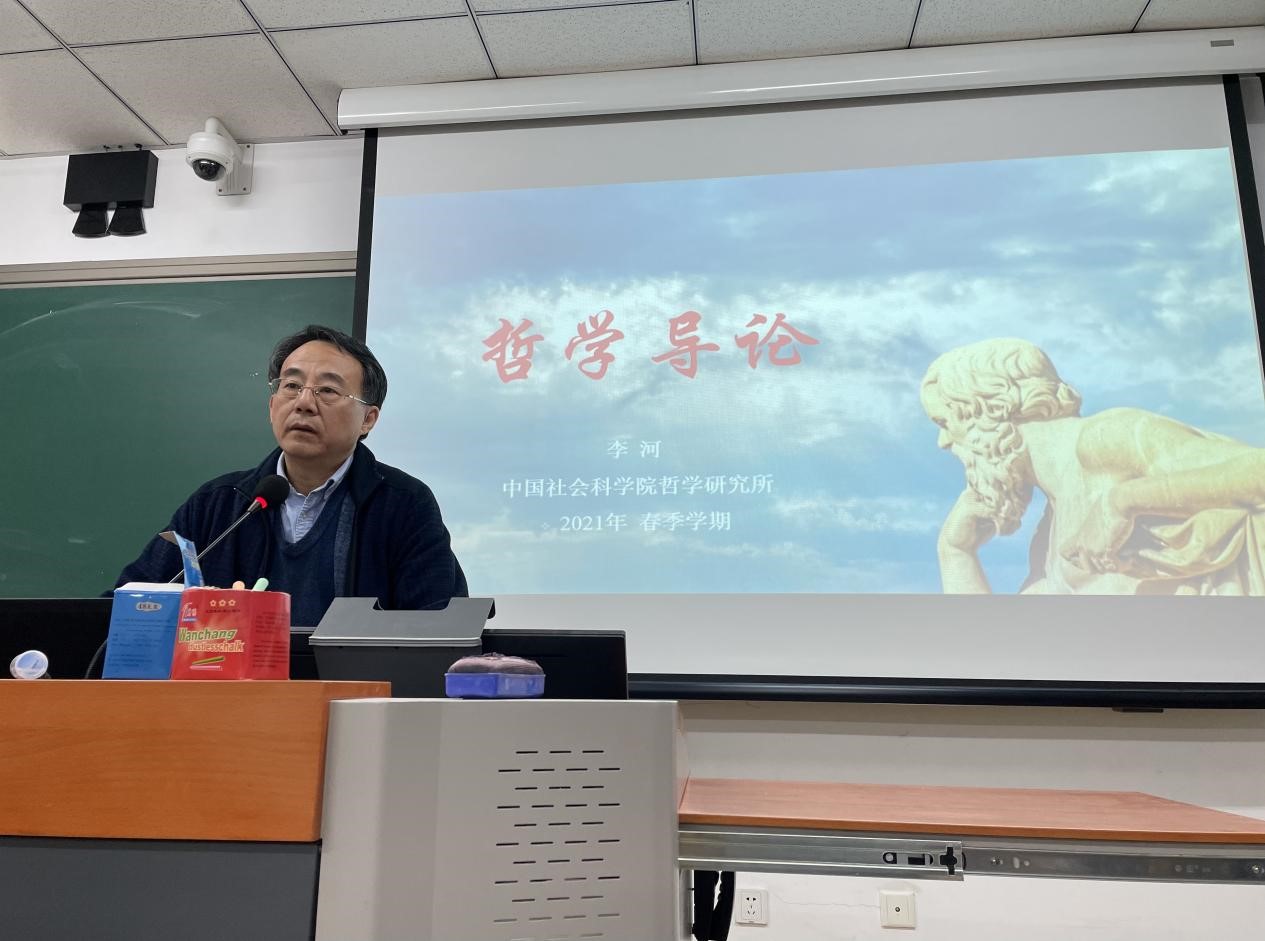 除了这些基础概念,李河还把伦理学、政治哲学、历史哲学等不同学科分支巧妙地融入讲解中,通过不同分支的轮廓和理论范式的介绍,帮助学生慢慢拼接出完整的哲学图景。在帮助学生搭建学科框架的同时,李河还会提供个性化的学术引导——当谈论到不同的哲学议题时,他会把中国社会科学院哲学研究所以及国内相关领域的重要学者及其代表作推荐给学生,引导学生自主探索感兴趣的领域方向,帮助他们开启个性化研究路径。