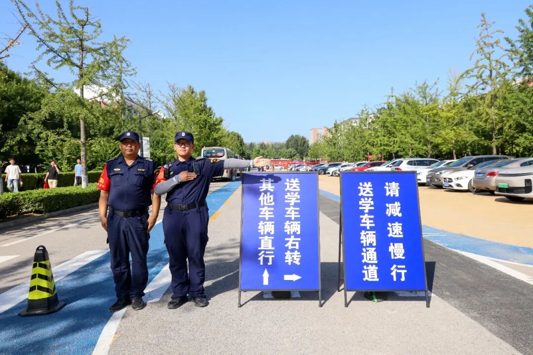 醒目的隔离带将秩序保障,鲜明的指示牌把路线明晰。来往车辆,在岗亭内外保安的耐心引导下有序前行。