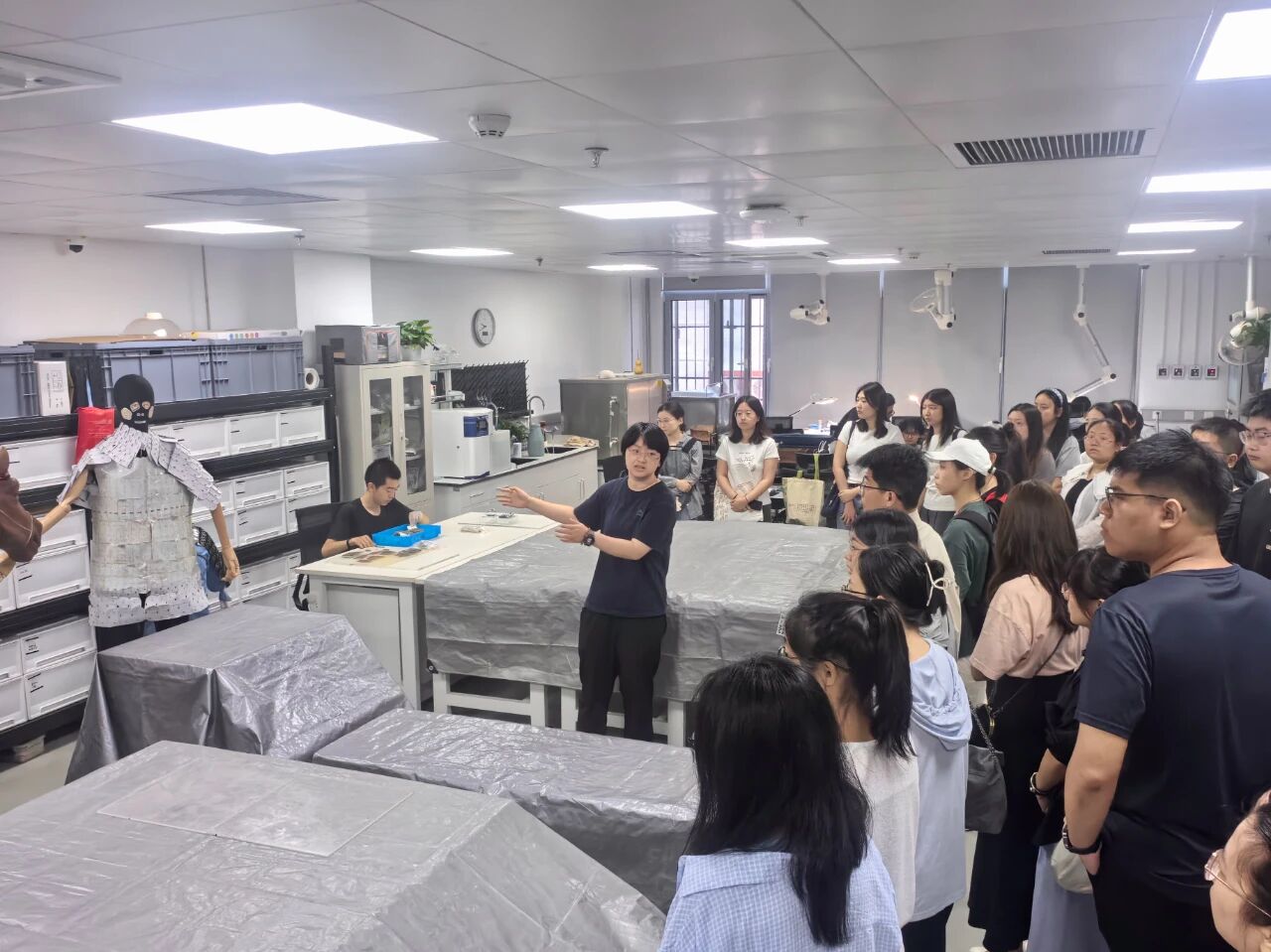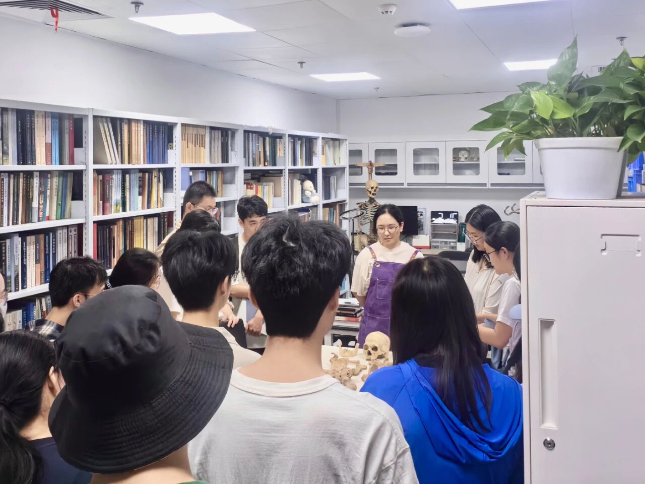短短半小时,我们穿梭于动物考古、人骨考古等多个实验室,近距离观察了“骨骼-毛皮”对照的羚羊标本,聆听了实验室老师讲述考古工作者对古代墓葬进行挖掘的过程。在实验室老师的娓娓道来下,X光透射、CT扫描、显微分析等“无损检测”技术,能让我们更加直观地感受到科技是如何穿透千年尘埃,重构历史细节。