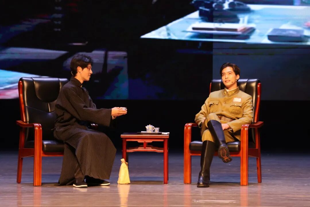 舞台上,“舍小家为大家”投身革命的青年、面对忠孝抉择悬笔思索的游子、面对威逼利诱时英勇就义的共产党员次第出现,为现场观众呈现了一个有血有肉、大忠大孝的“红色特工”冷少农形象。演出过程中,光影交错的巧妙构思、细腻真实的舞台演绎,深深打动了在场的每一位师生,不少观众的眼中饱含热泪。当剧中演员说出“山川会记得,日月会记得,我们会记得”的铮铮誓言,全场观众用最热烈的掌声予以回应,见证了家国情怀的又一次动人传承。