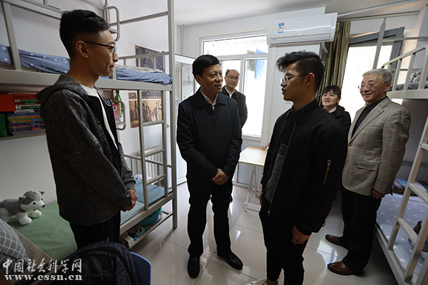 中国社会科学院院长、党组书记谢伏瞻到学生宿舍调研。 本网记者 杨崇海/摄