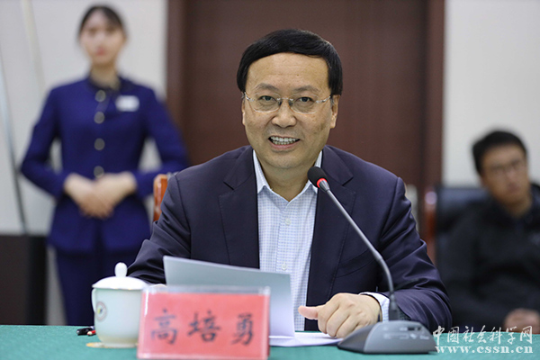 中国社会学院副院长、党组成员高培勇主持座谈会。 本网记者 杨崇海/摄