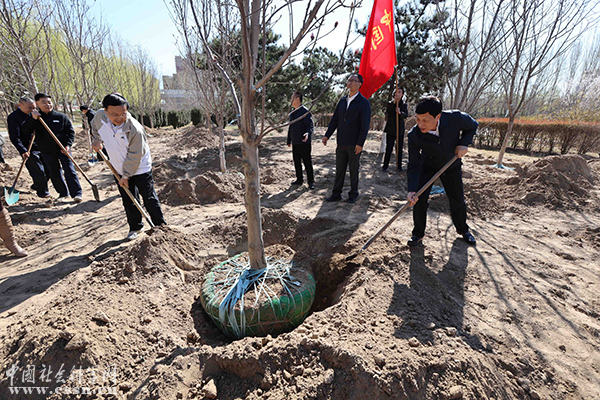 中国社会科学院院长、党组书记谢伏瞻,副院长、党组成员高培勇参加植树活动。 本网记者 杨崇海/摄