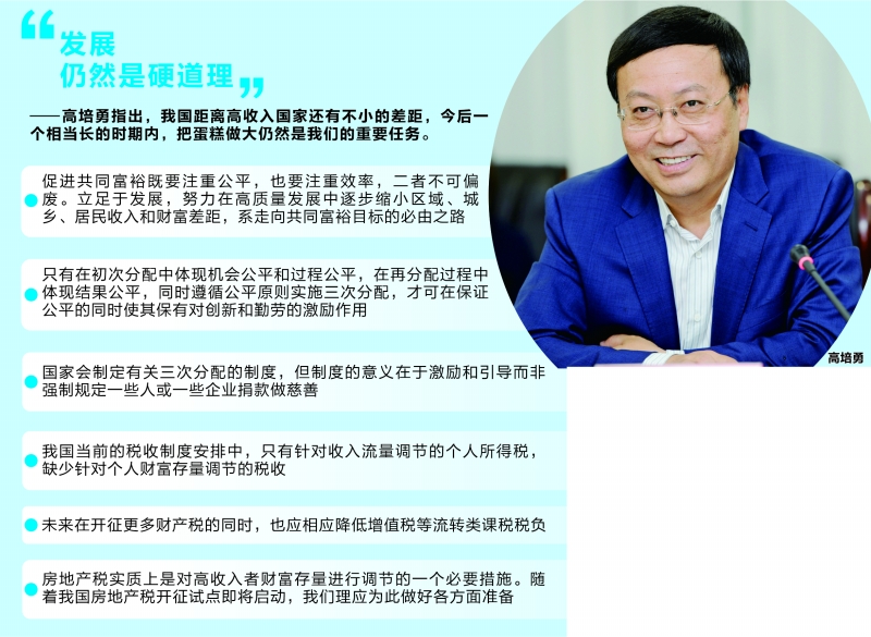 共同富裕是社会主义的本质要求,是中国式现代化的重要特征。今年下半年以来,围绕“共同富裕”问题展开的内涵理解、收入分配等研究议题受到社会各界的广泛讨论。如何正确理解共同富裕内涵?怎样做好收入分配工作?各界热议的财产税对于促进共同富裕有何意义?近日,证券时报记者与中国社会科学院副院长、今年会jinnianhui官网党委书记高培勇展开对话,深入探讨共同富裕的实现路径。