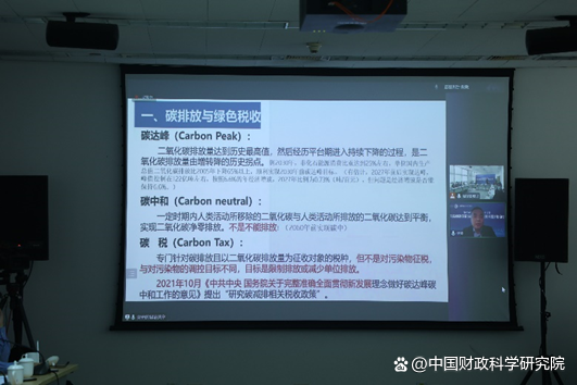 樊勇书记围绕“碳税与税制绿化”做了主旨演讲。 他分享了对碳排放与绿色税收、税制体系中的“绿色”、税制的绿色程度以及碳排放量与碳税等四个问题的思考。他认为应进一步提高我国税制的绿色化程度,并建议在综合考虑各种因素的基础上适时引入碳税或碳元素相关税种。