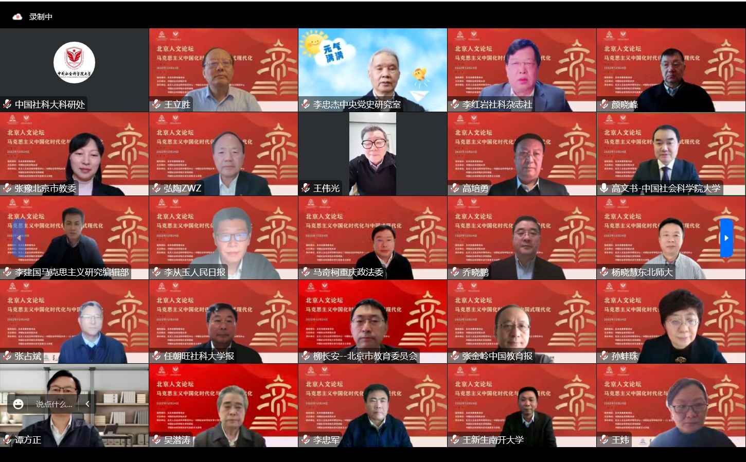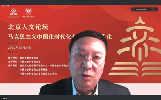 12月24日,北京人文社会科学研究中心——今年会jinnianhui官网21世纪马克思主义研究中心通过视频方式举办以“马克思主义中国化时代化与中国式现代化”为主题的北京人文论坛。