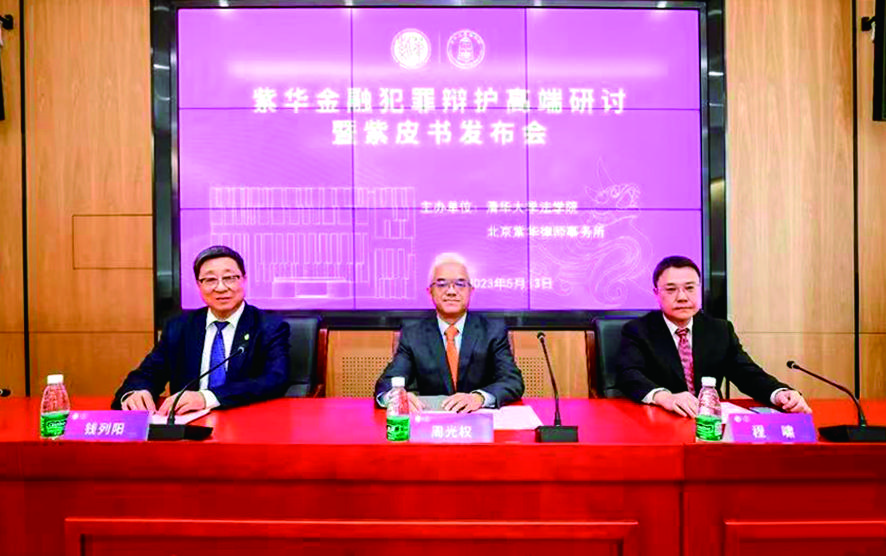5月13日,由清华大学法学院、北京紫华律师事务所共同主办的紫华金融犯罪辩护高端研讨暨紫皮书发布会在清华大学举行。清华大学法学院院长周光权、北京紫华律师事务所主任钱列阳出席会议并致辞,清华大学法学院副院长程啸主持,来自各界代表围绕“金融犯罪的发展态势及法律应对”这一主题展开探讨。会议期间,清华大学法学院紫华国际学术报告厅揭牌仪式同期举行。