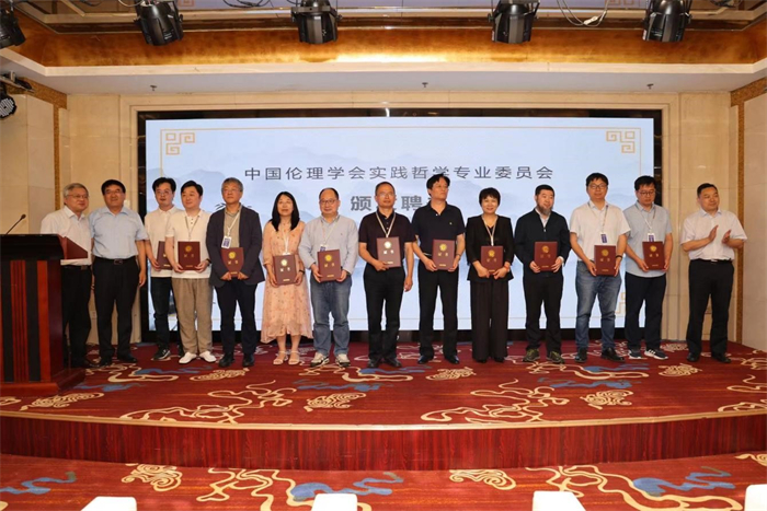 致辞环节后,中国伦理学会执行秘书长王海滨宣读了中国伦理学会关于批准成立实践哲学专业委员会的决定,并举行了专委会会员代表大会,选举产生了第一届专委会组织机构。天津社会科学院马克思主义研究所所长、《道德与文明》杂志社主编杨义芹研究员担任专委会主任,江畅、丁立群、田海平、唐文明、付长珍、李猛、朱刚、张霄、李涛担任副主任,李涛兼任秘书长。实践哲学专业委员会设在天津社会科学院。中国伦理学会会长孙春晨向新当选的专委会主任杨义芹授牌。