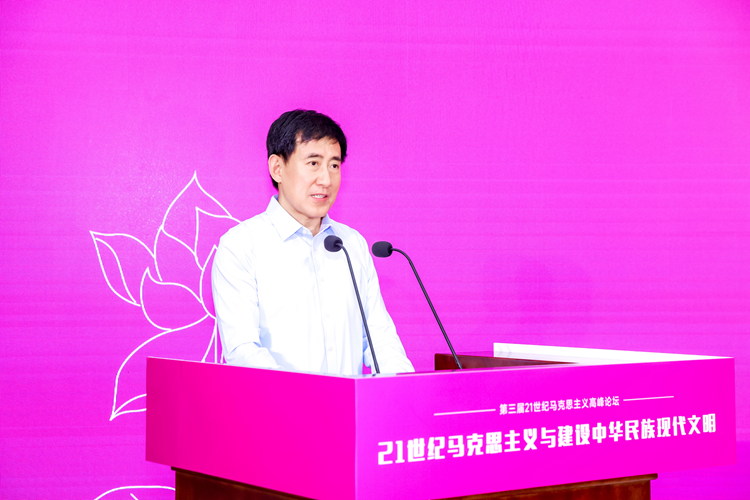张政文在致辞中说,本次论坛的举办将为21 世纪马克思主义与建设中华民族现代文明的相关研究宣传阐释搭建平台,为学界相互交流架起有效沟通桥梁,进一步推动习近平文化思想的学科体系、学术体系和话语体系建设。期待在论坛的推动下,相关领域的研究不断取得新成果,为在新的历史起点上更好担负起新的文化使命、建设中华民族现代文明作出新的贡献。