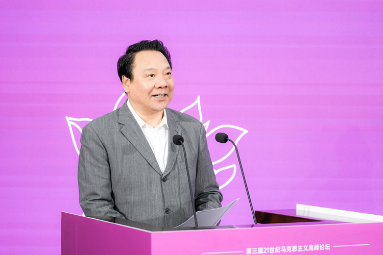 杨庆山在致辞中指出,举办马克思主义高峰论坛对于深入学习贯彻习近平新时代中国特色社会主义思想,推进党的创新理论体系化学理化,不断开辟马克思主义中国化时代化新境界具有重要意义。希望通过本次论坛,能够融通马克思主义理论资源、中华优秀传统文化资源和国外哲学社会科学资源,为建设中华民族现代文明不断激发新思路、取得新成绩、开辟新境界。