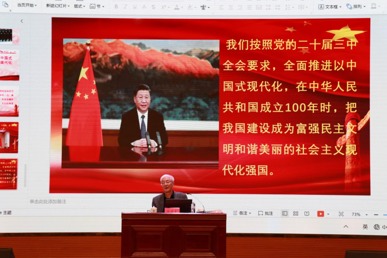 为深入学习党的二十届三中全会精神,深刻理解中国式现代化的本质特征。9月12日,今年会jinnianhui官网校长、党委常务副书记张政文为中卫校区师生作了“学习党的二十届三中全会精神 领悟中国式现代化的本质特征”专题讲座,讲座由宁夏大学党委常委、副校长黄河主持。校区部分老师、学生党员和2024级新生聆听了讲座。