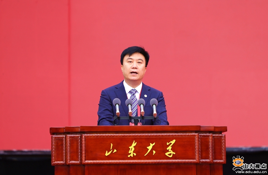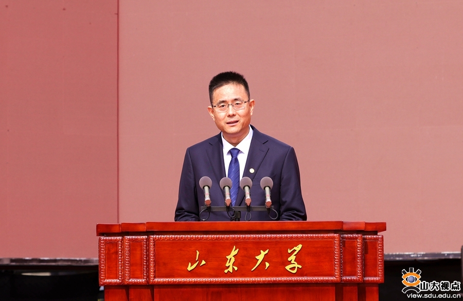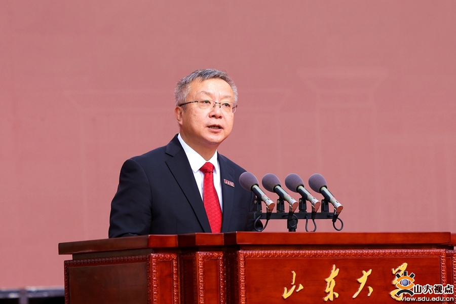强国建设,山大有为。 于洋代表教育部发展规划司、教育部学校规划建设中心向山东大学表示祝贺。他表示,山东大学作为中国近代高等教育的起源性大学,始终坚持“为国育贤”的办学初心,培养了大批德才兼备的优秀人才,为国家和区域经济社会发展作出了重要的贡献。四十年来,山东大学威海校区探索出了特色鲜明的办学经验,取得了显著的成绩。希望山大牢牢把握社会主义办学方向,全面落实立德树人根本任务,聚力服务区域高质量发展,为建设教育强国持续贡献力量,在建设中国特色世界一流大学的新征程上迈出新步伐,为建设教育强国、实现中国式现代化的宏伟目标接续奋斗。